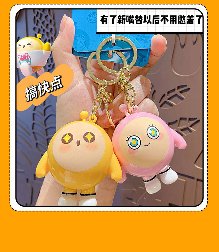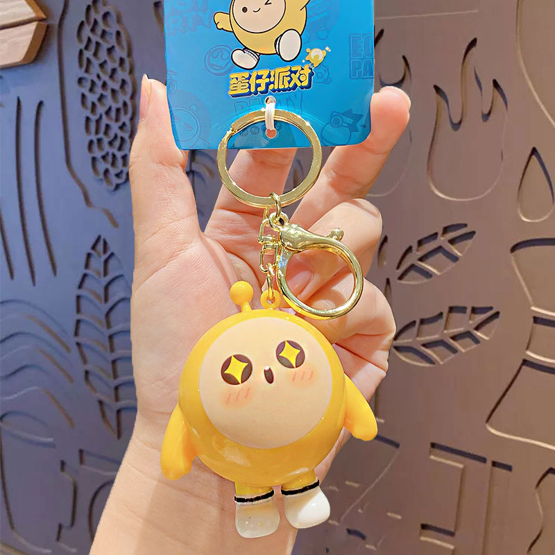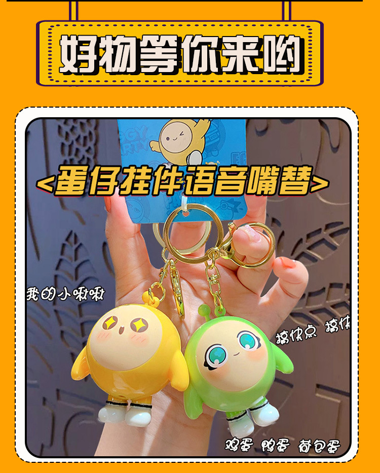 정품 귀여운 계란 파티 키 체인 펜던트 창조적 인 커플 음성 인형 키 체인 가방 매달려 장식품스토어 가기