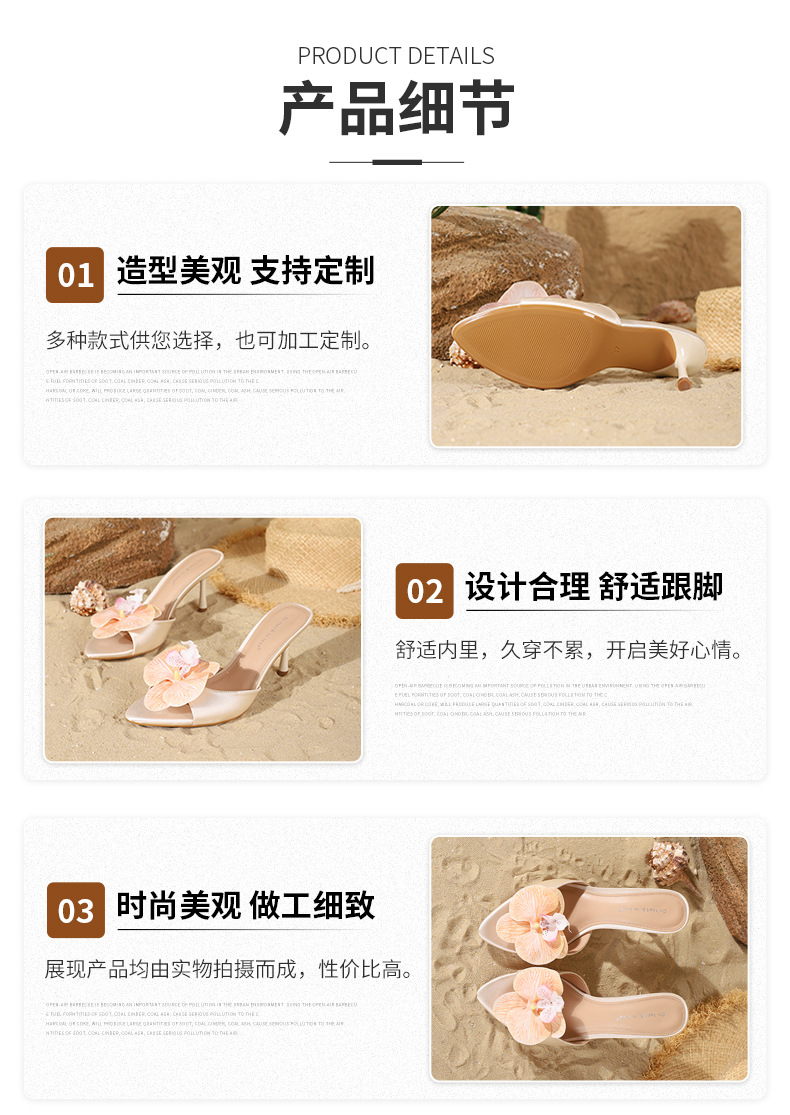 2025 새로운 꽃 장식 오픈 발가락 얇은 굽 뾰족한 여성 여름 겉옷 유행 패션 캐주얼 하이힐 샌들