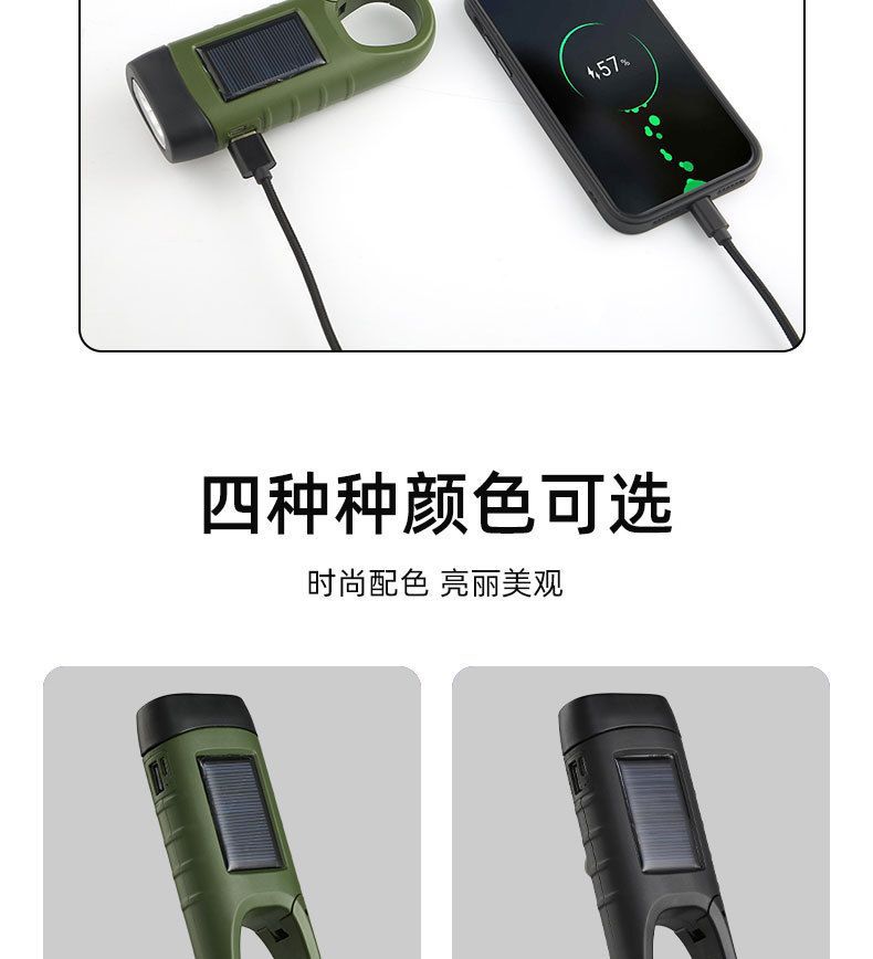태양 손 크랭크 손전등 다기능 캠핑 전원 비상 led 비상 조명 야외 조명 발전 손전등