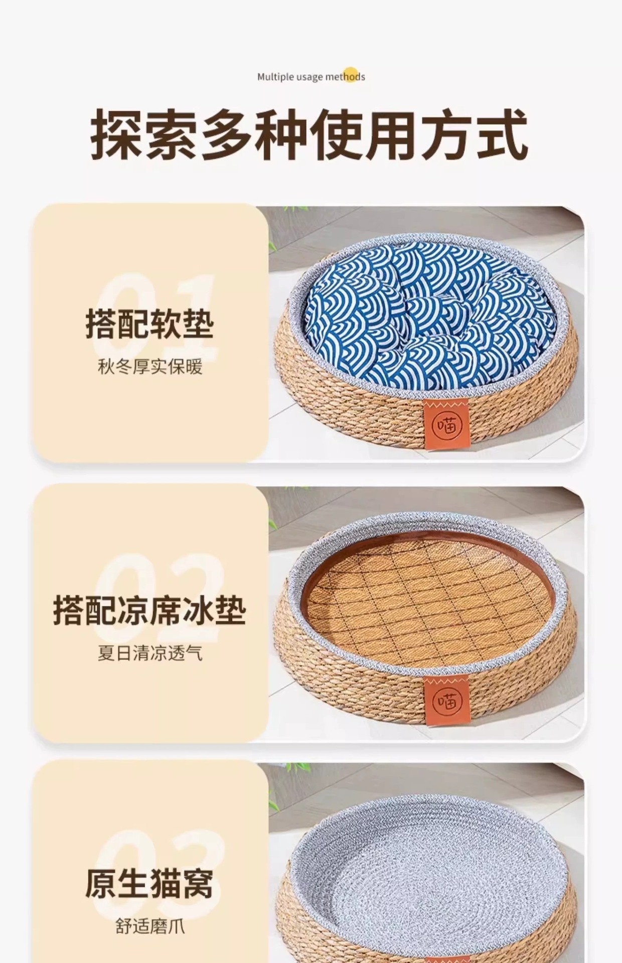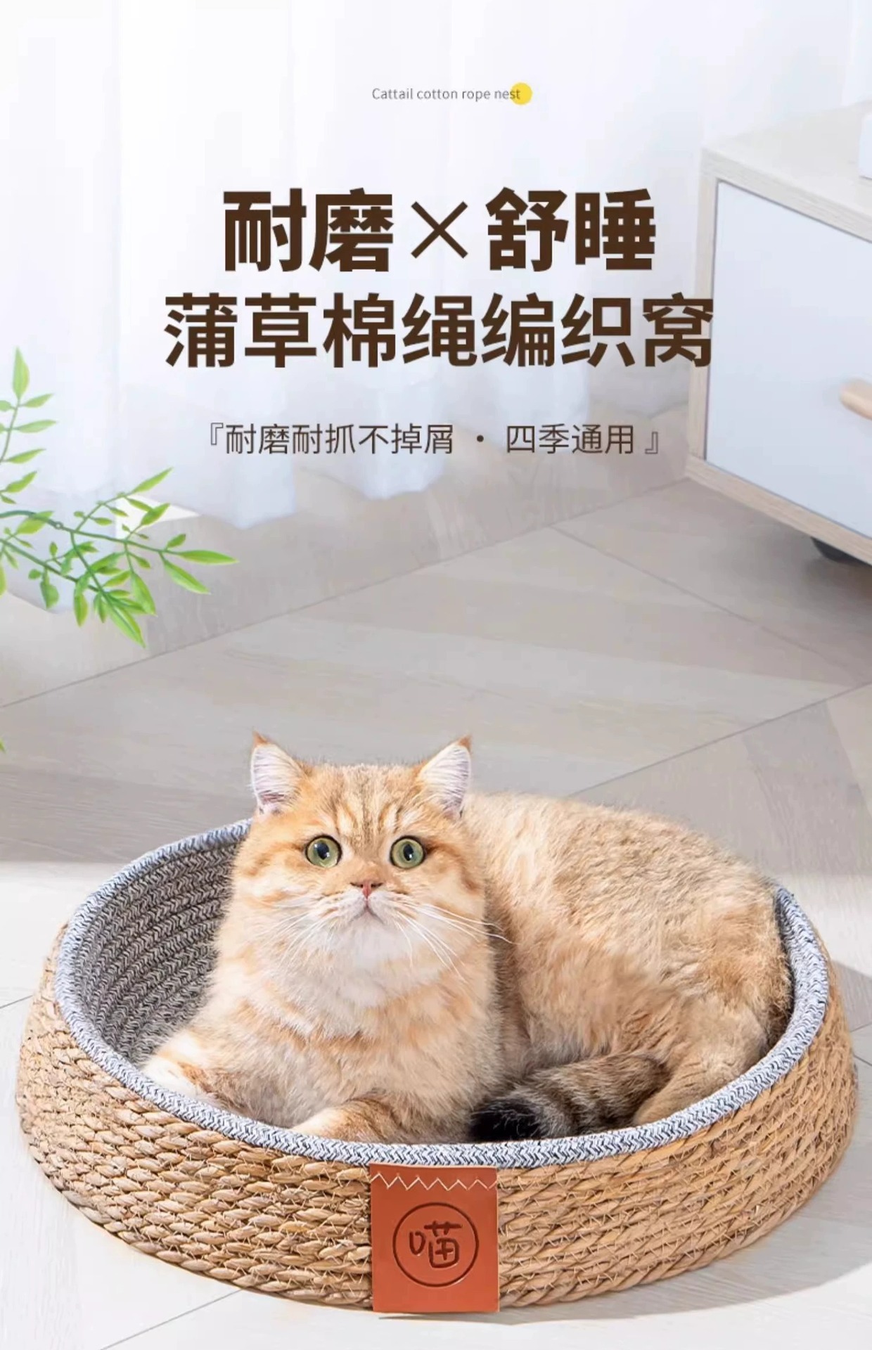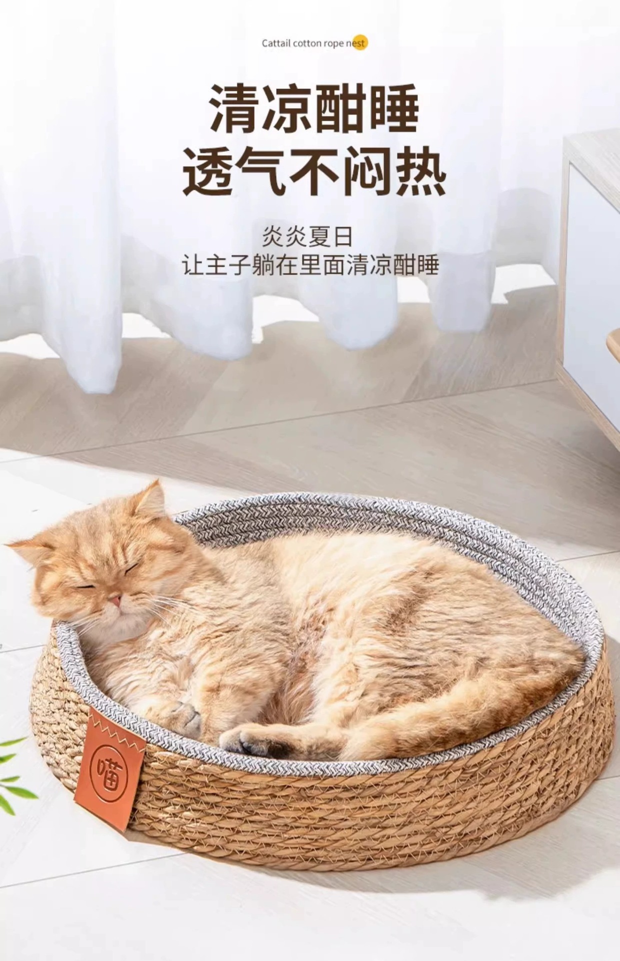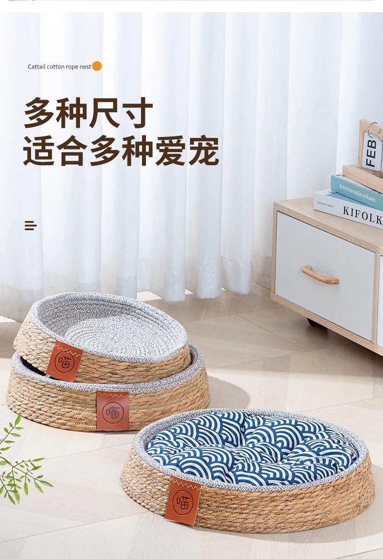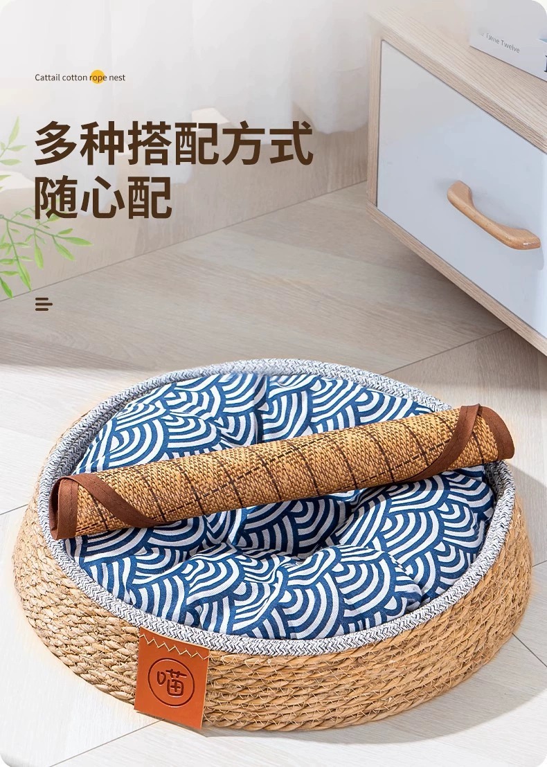 여름철 모든 계절에 적합한 등나무 고양이 둥지, 애완용 고양이 둥지, 고양이 여름 수면 고양이 빌라 개집, 통기성이 좋고 편안합니다.스토어 가기