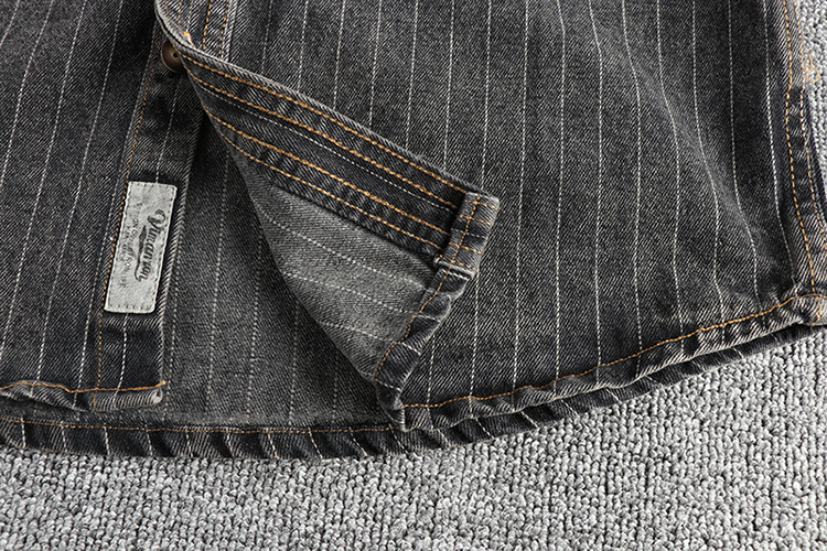 영국 복고풍 검정색과 회색 줄무늬 데님 셔츠 남성 가을 신작 작업복 포켓 셔츠 재킷스토어 가기