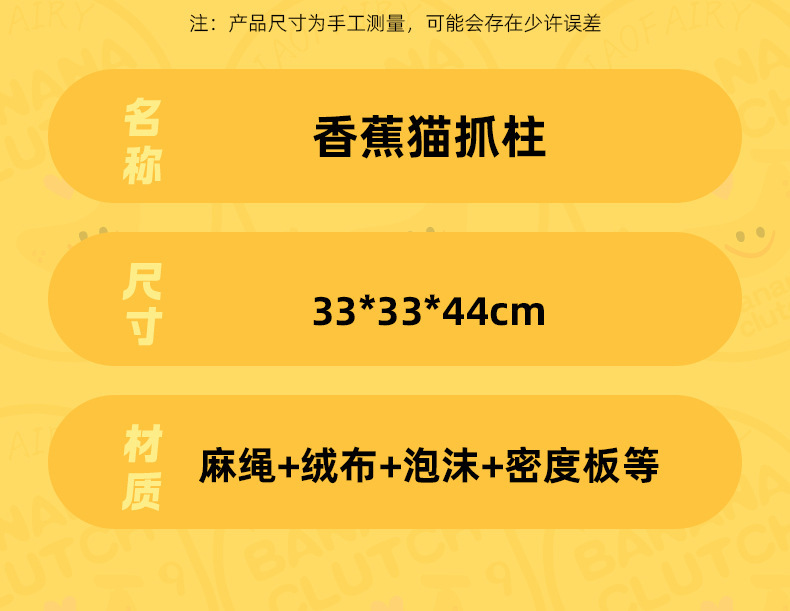 香蕉猫抓柱:独立纸盒打包尺寸44*35*23cm, 净重1.3kg,毛重1.8kg