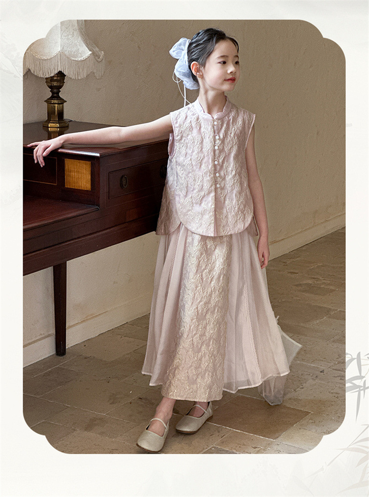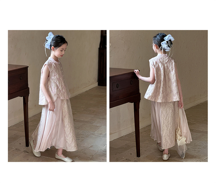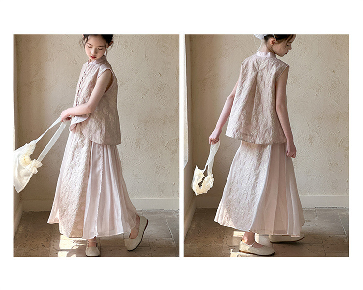 여자 복고풍 새로운 중국 스타일 정장 2025 여름 새로운 큰 어린이 자카드 민소매 조끼 스커트 중국 스타일 스커트