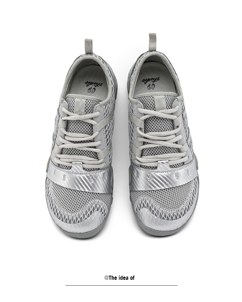남성과 여성의 신발 액체 실버 여름 커플 맨발 신발 스포츠 얇은 단독 슬로우 런닝 신발 2025 메쉬 통기성 캐주얼 신발