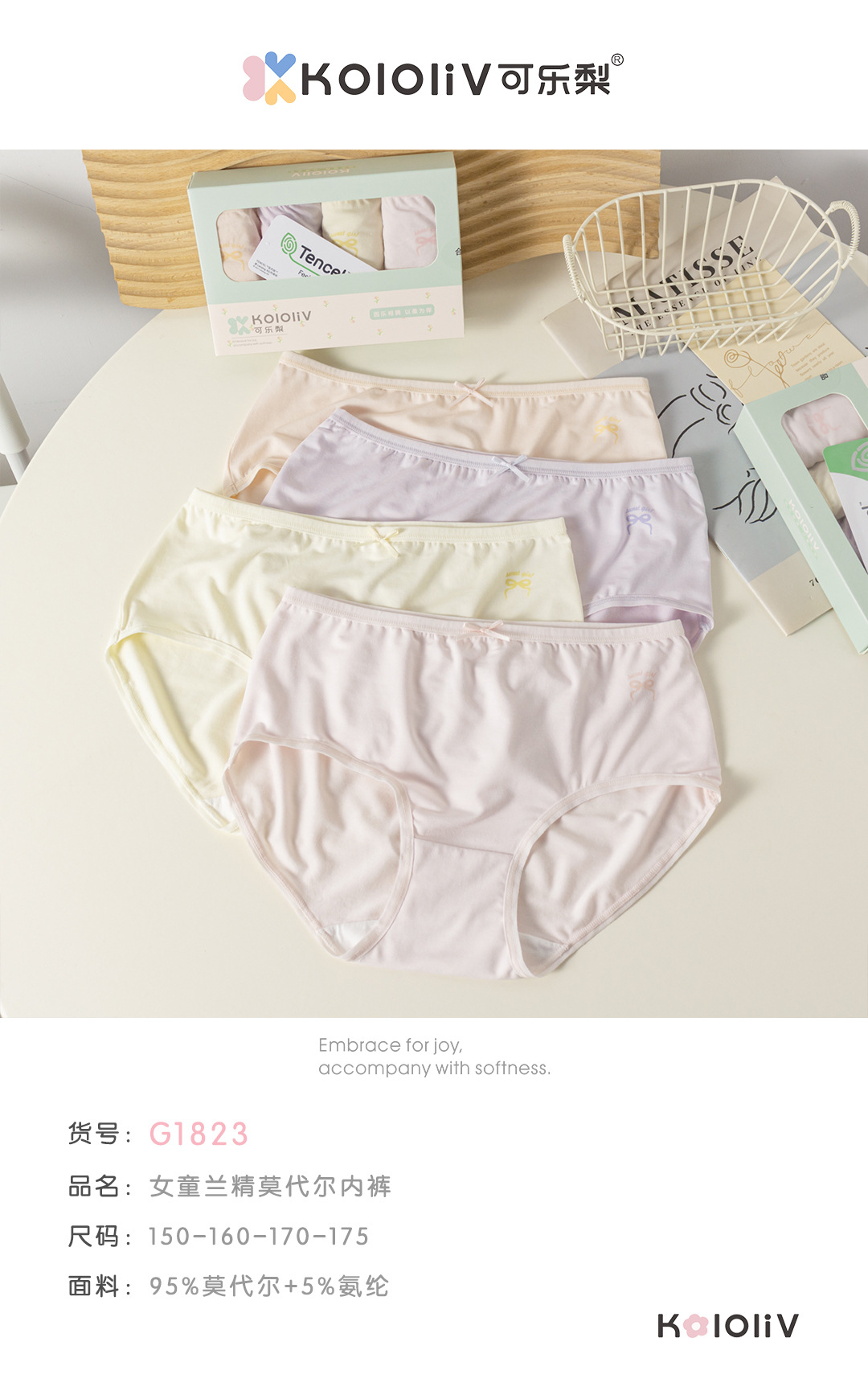 콜라리 소녀용 모달 소재 팬티, 중학생용 중간 허리 팬티, 큰 아이들을 위한 삼각형 면 팬티스토어 가기