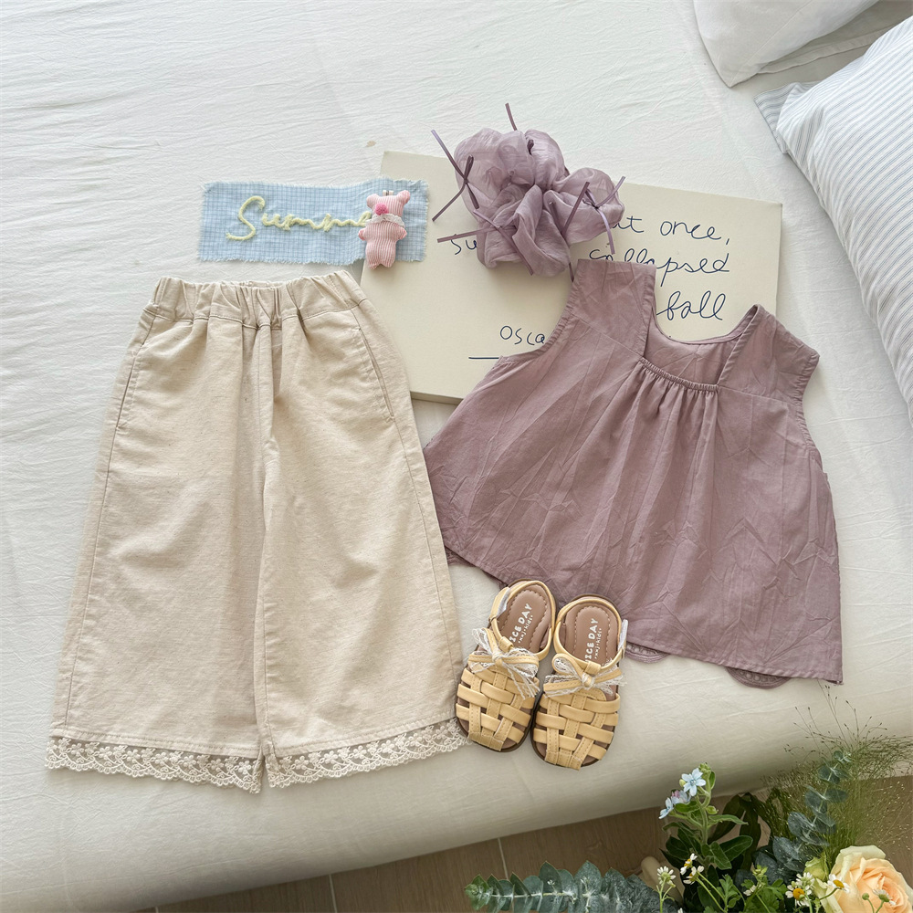 핑크 하우스 스위트 걸스 여름 2025 새로운 어린이 민소매 조끼 인형 셔츠 바지 세트 투피스 세트