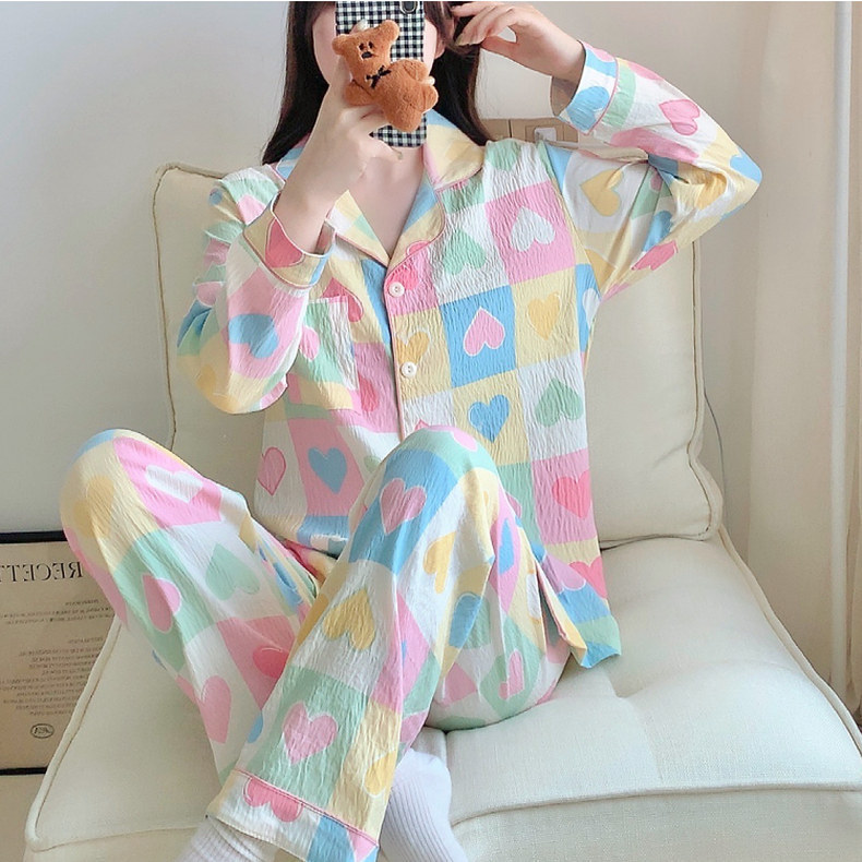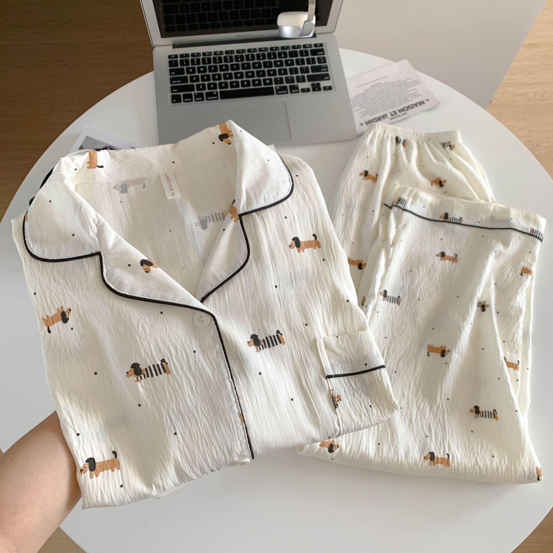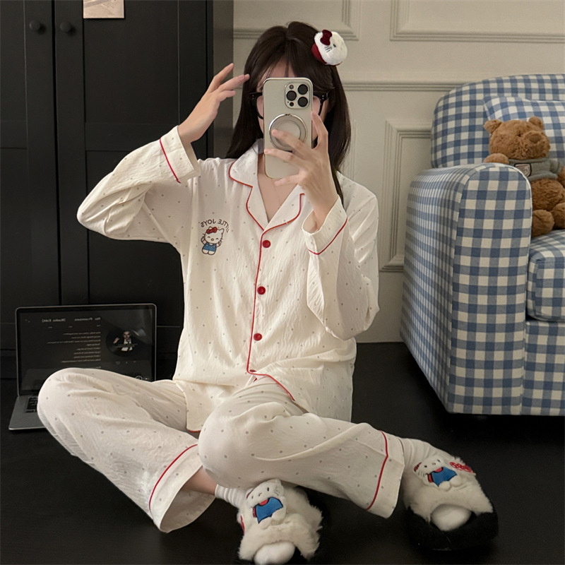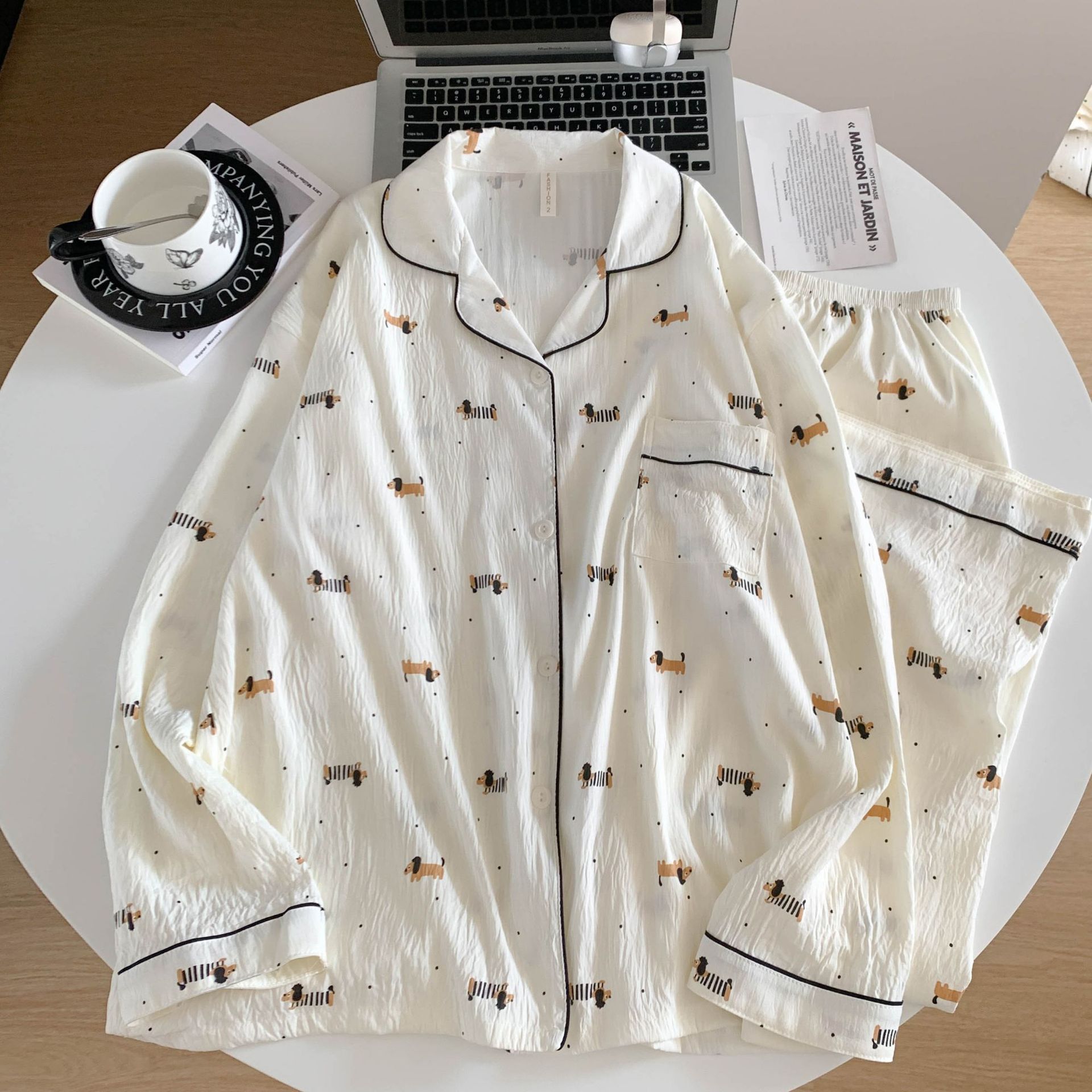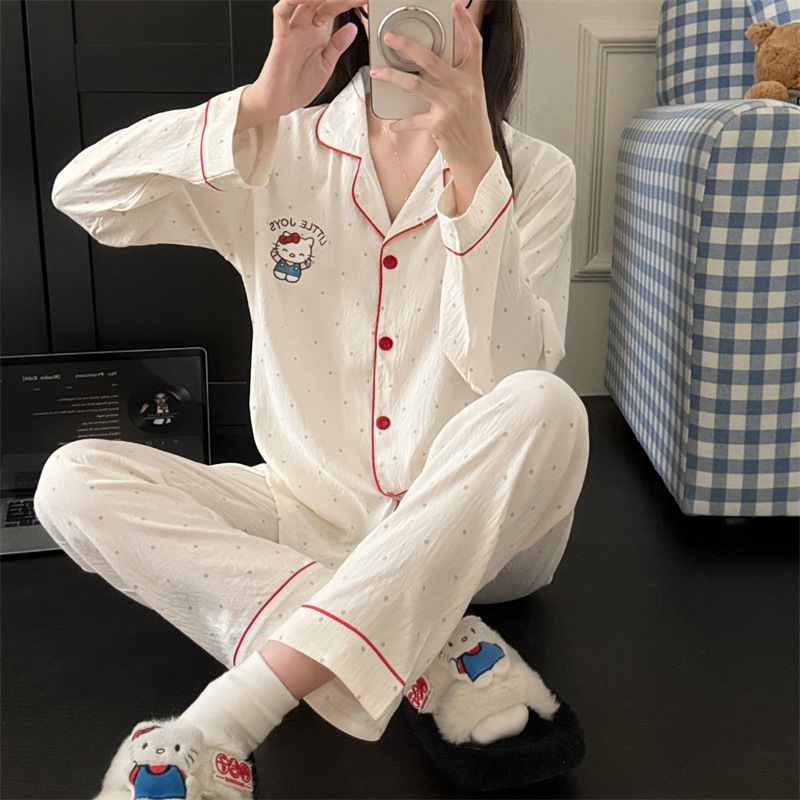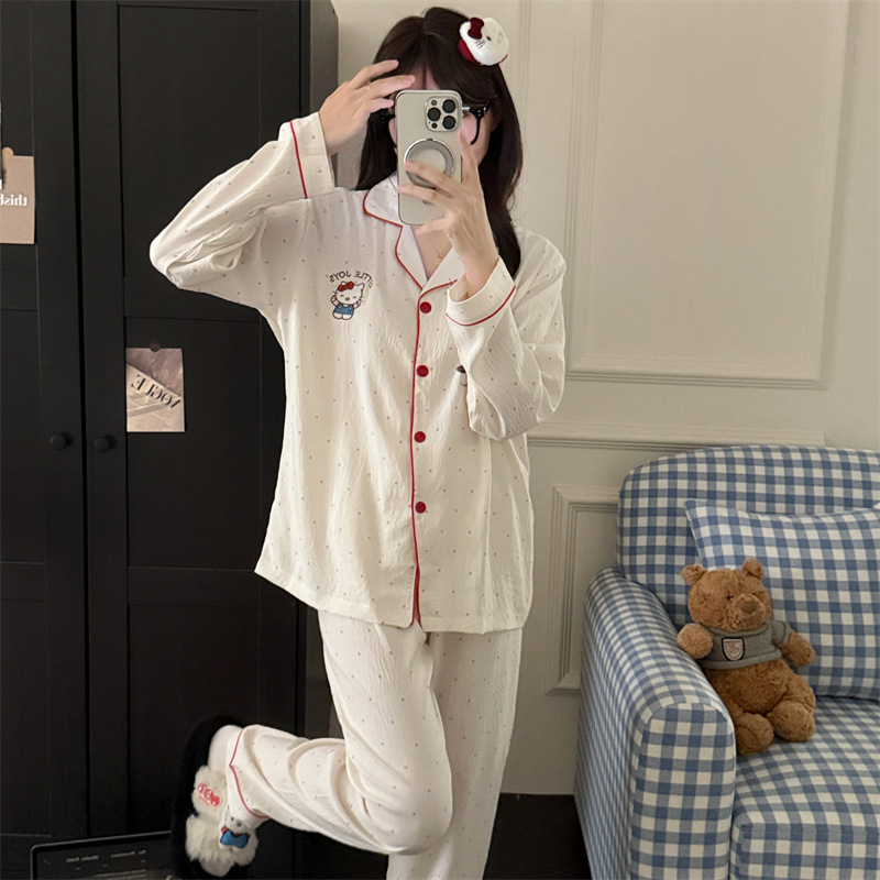 여성을위한 잠옷 봄, 가을 긴팔 바지 2025 새로운 클라우드 코튼 얇은 귀여운 만화 여름 정장 홈웨어