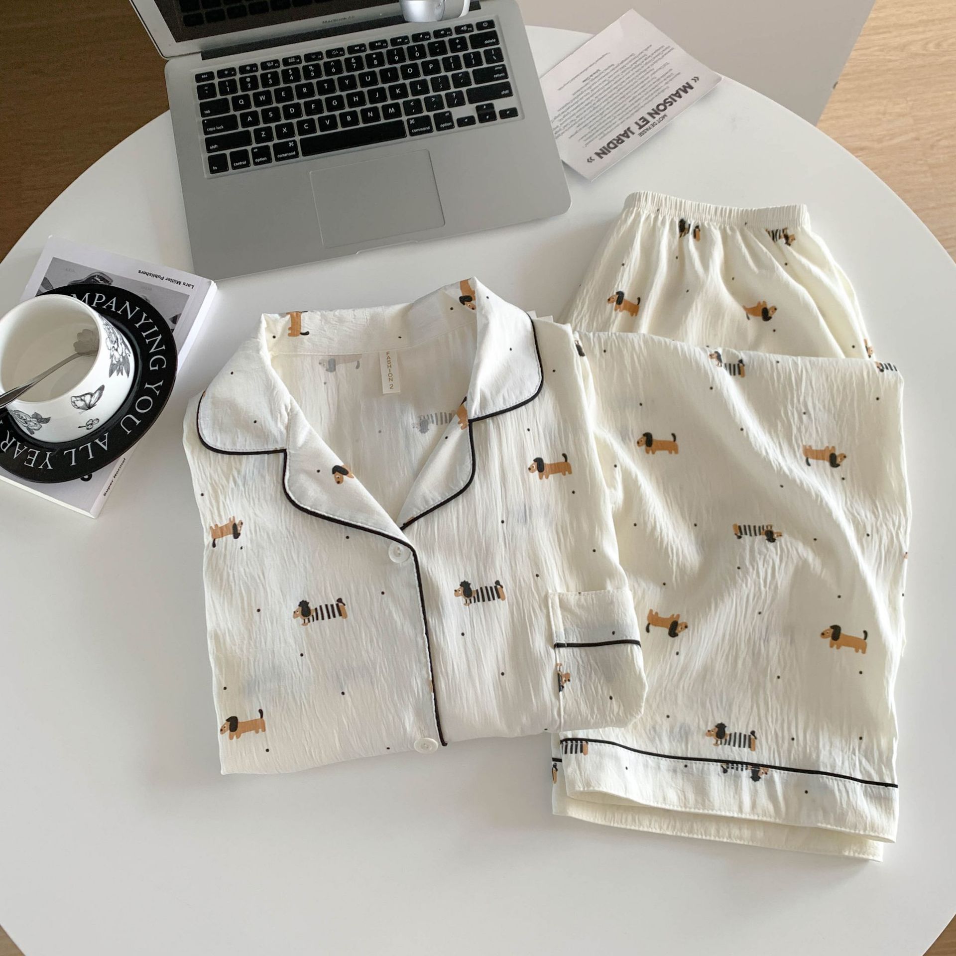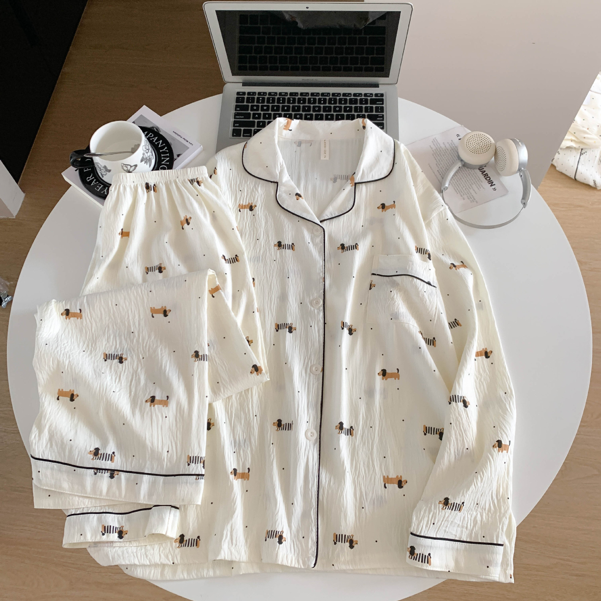 • 8835 폴카 도트 닥스훈트--Yunduo 코튼 긴팔 바지