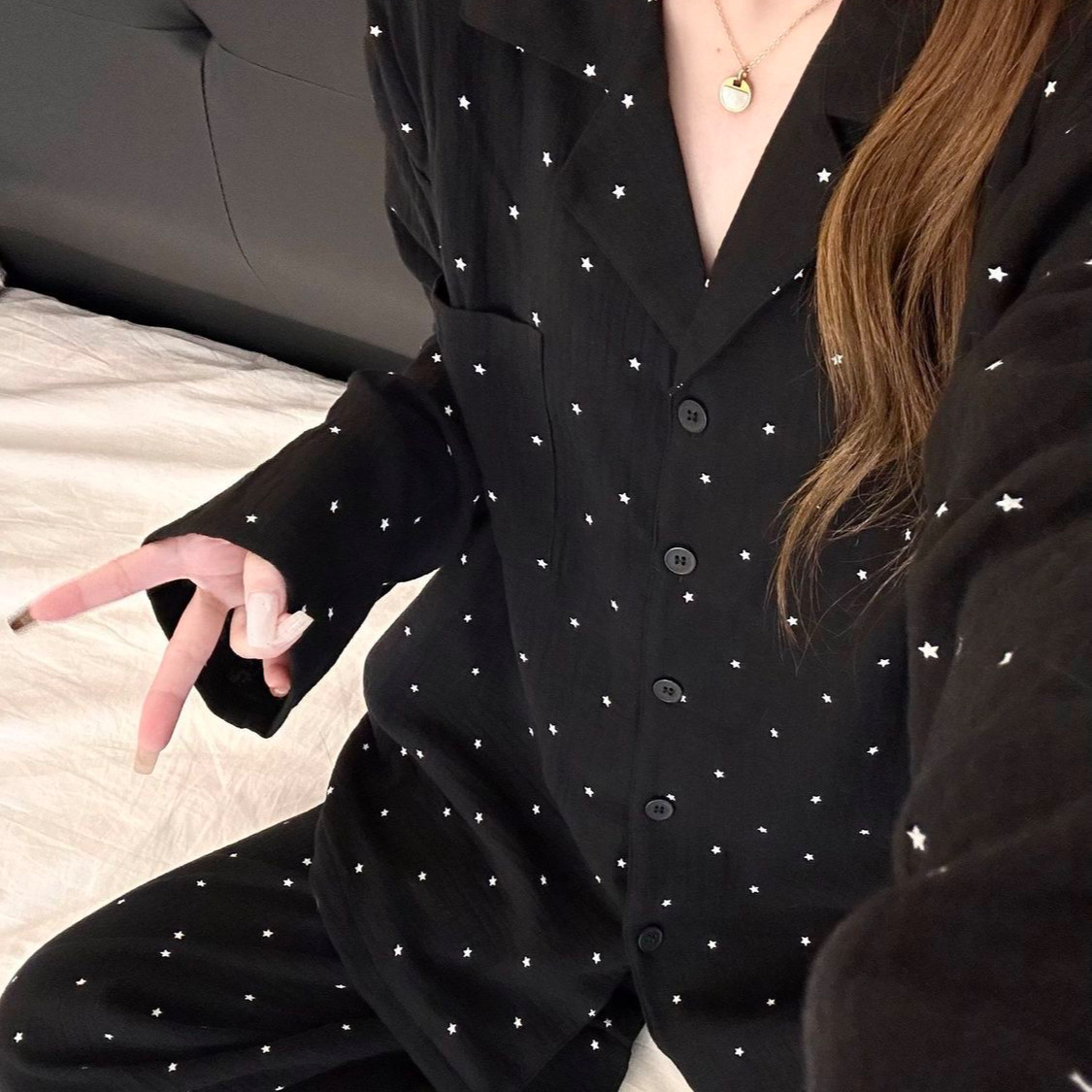 • 8922 블랙 도트 무늬 - 구름면 긴팔 긴바지