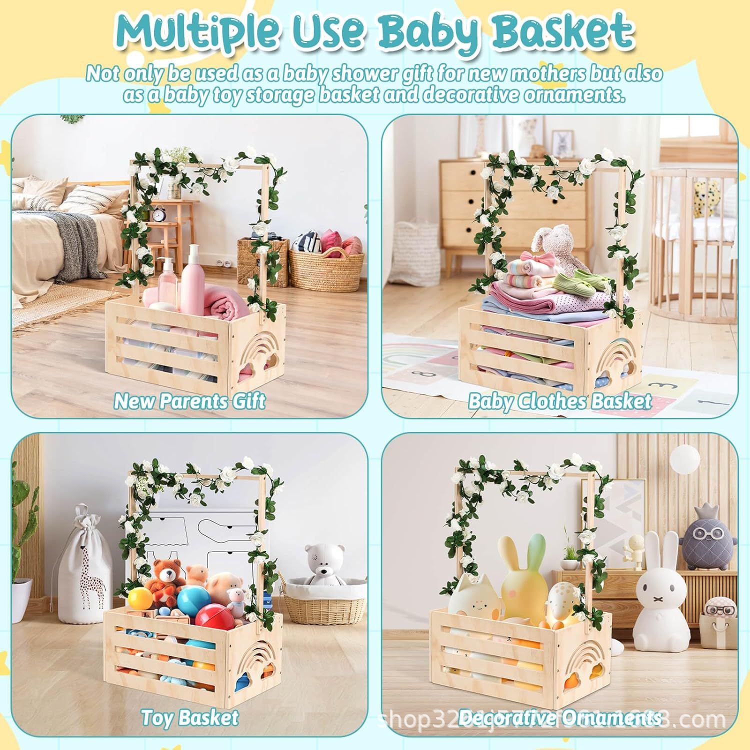나무 아기 제품 보관 상자 가정용 의류 장난감 보관 바구니 신생아 선물 포장 나무 보관 상자