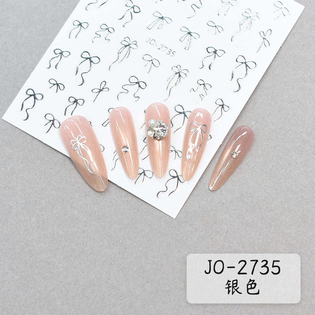 새로운 엔트리 라이트 럭셔리 간단한 핫 스탬핑 실버 순수 욕망 활 네일 아트 스티커 6 컬러 올 매치 소녀 하트 블랙과 화이트 백 접착 스티커