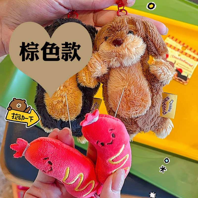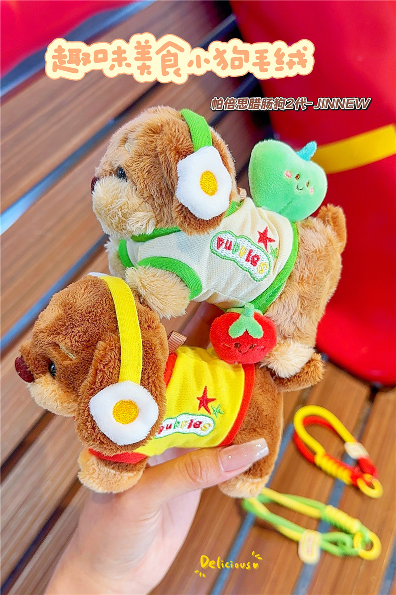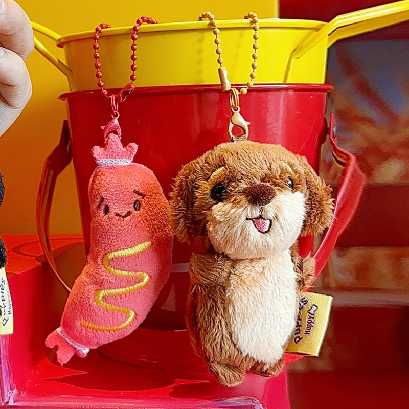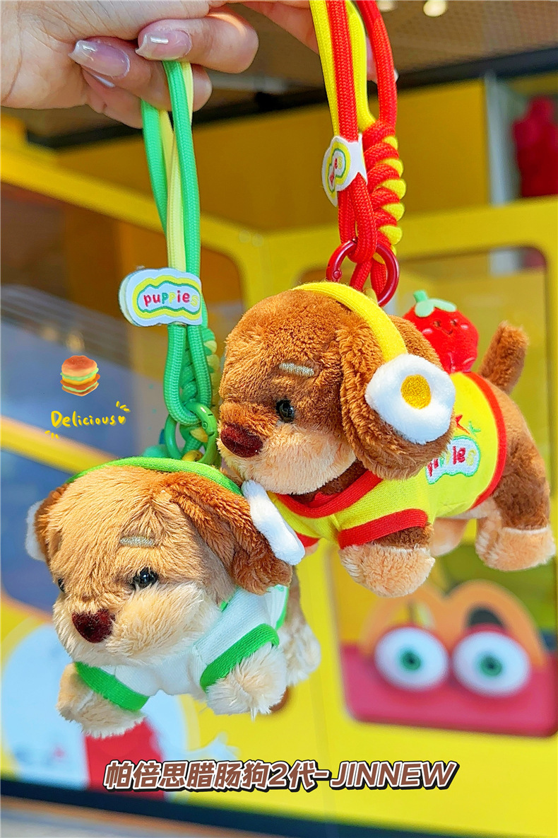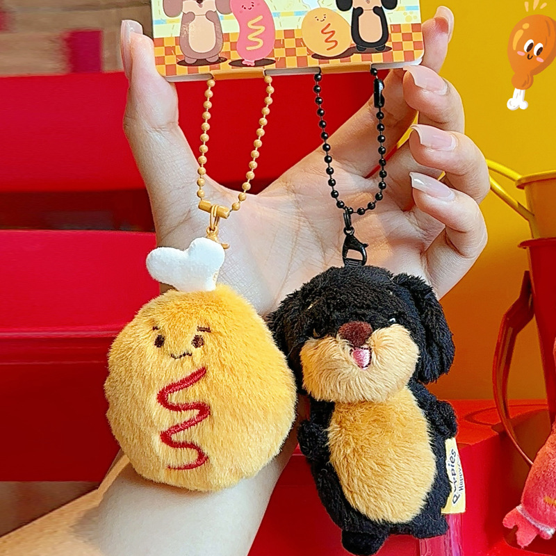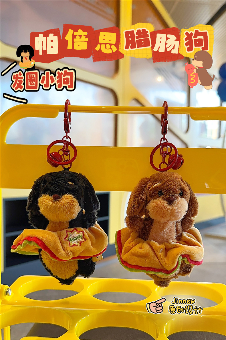 정품 귀여운 파비 소시지 개 햄버거 봉제 펜던트 만화 소시지 강아지 키 체인 가방 펜던트 도매스토어 가기