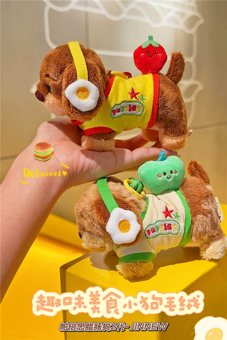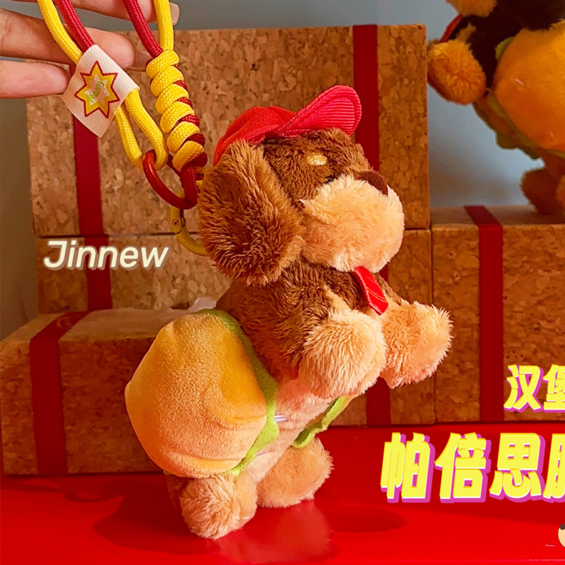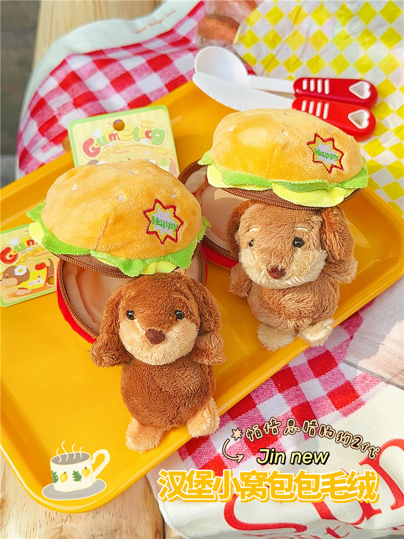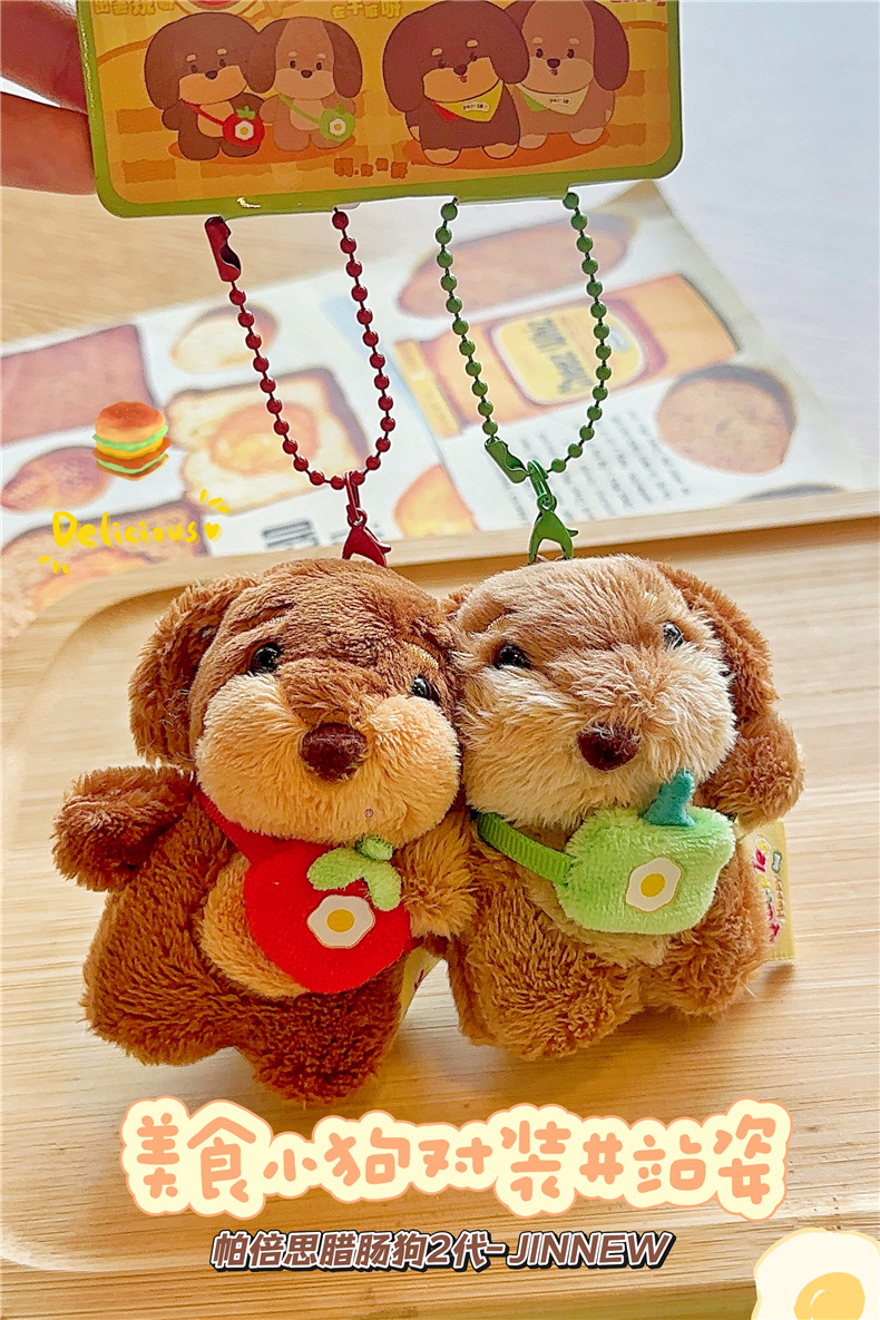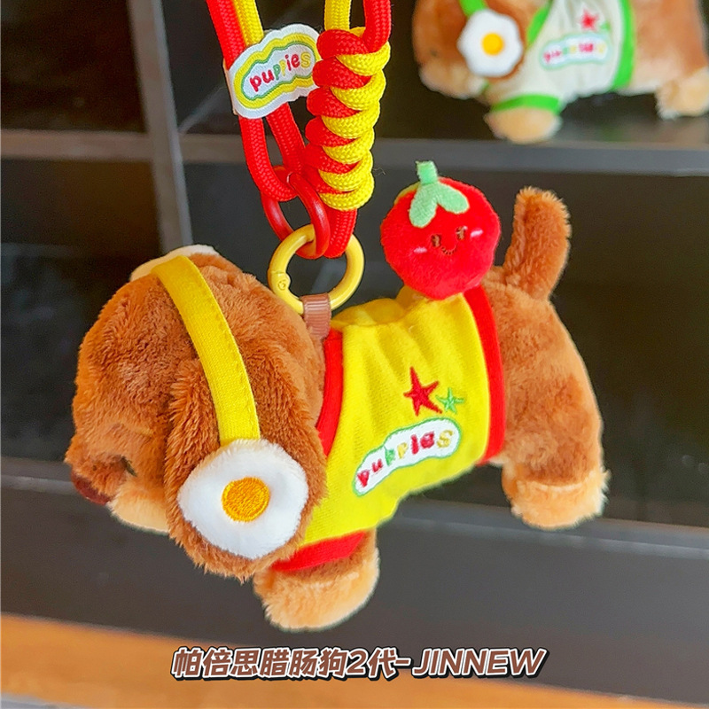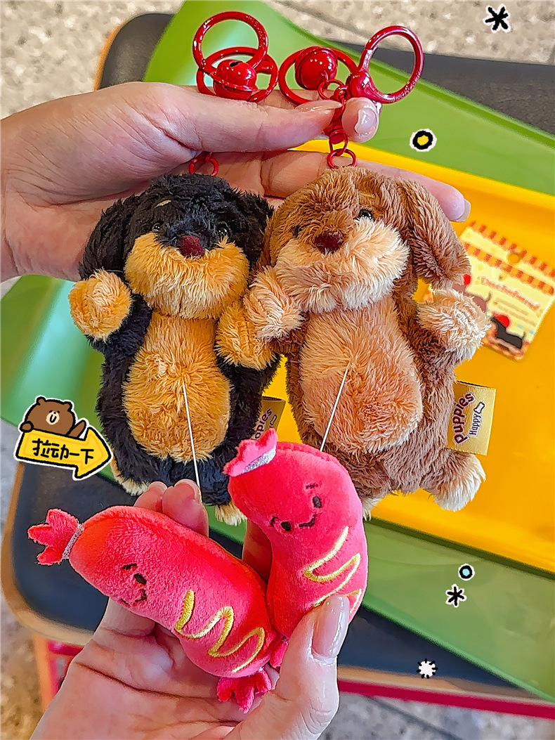 정품 귀여운 파비 소시지 개 햄버거 봉제 펜던트 만화 소시지 강아지 키 체인 가방 펜던트 도매스토어 가기