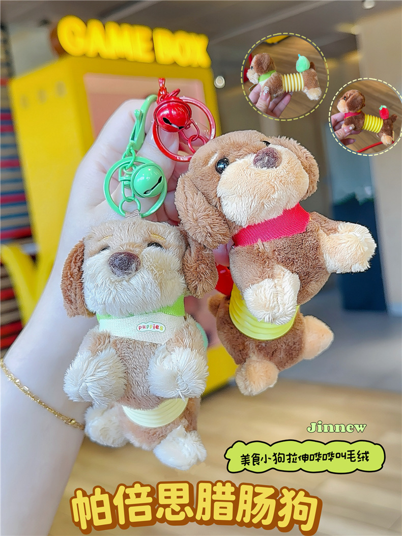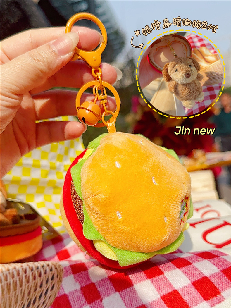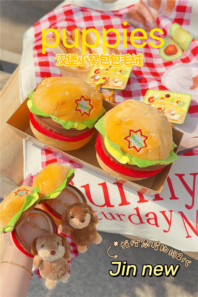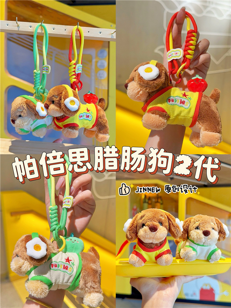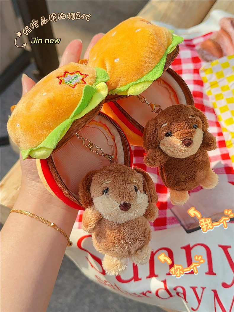 정품 귀여운 파비 소시지 개 햄버거 봉제 펜던트 만화 소시지 강아지 키 체인 가방 펜던트 도매스토어 가기