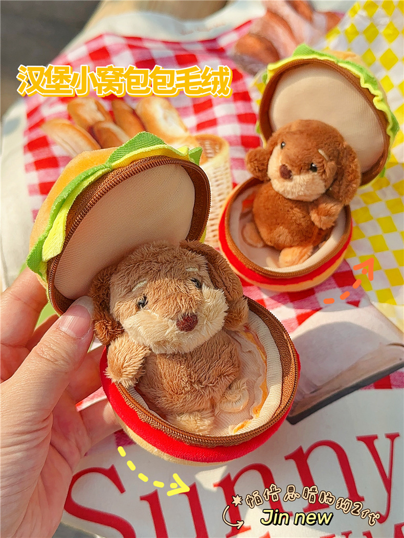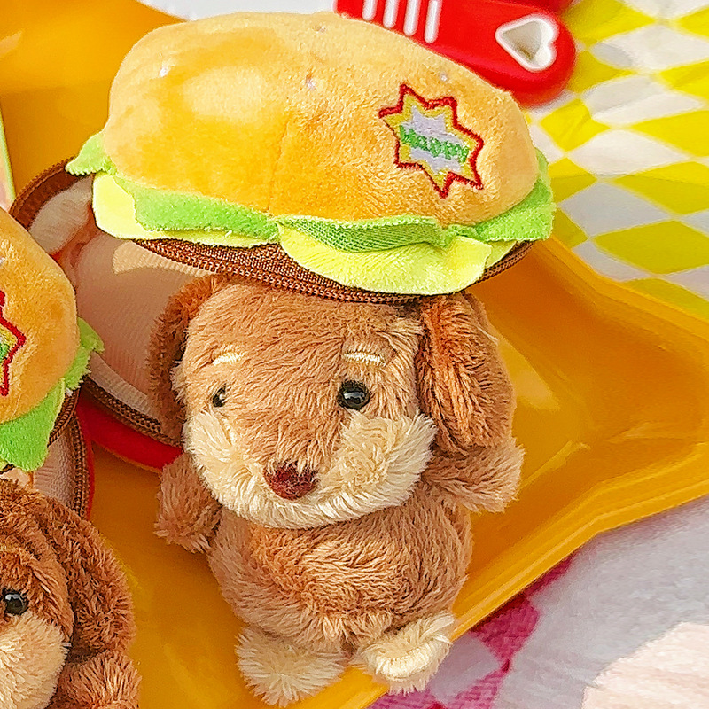정품 귀여운 파비 소시지 개 햄버거 봉제 펜던트 만화 소시지 강아지 키 체인 가방 펜던트 도매