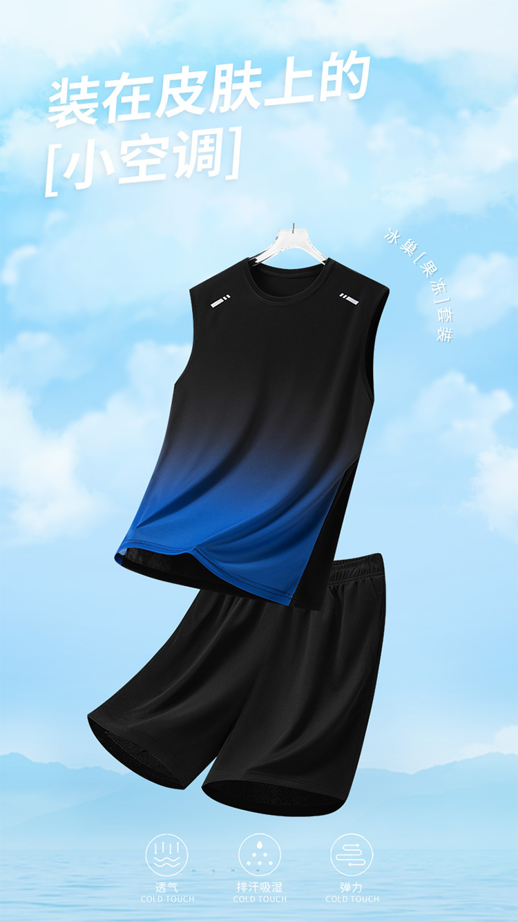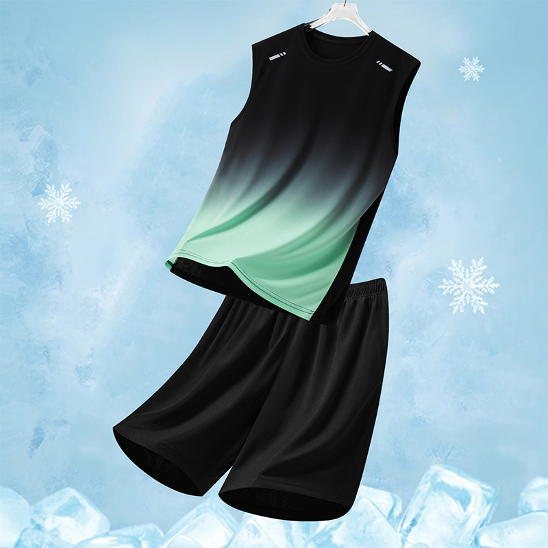 스포츠 세트 남자 여름 남자 캐주얼 세트 인쇄 그라디언트 느슨한 2 피스 통기성 빠른 건조 조끼 반바지