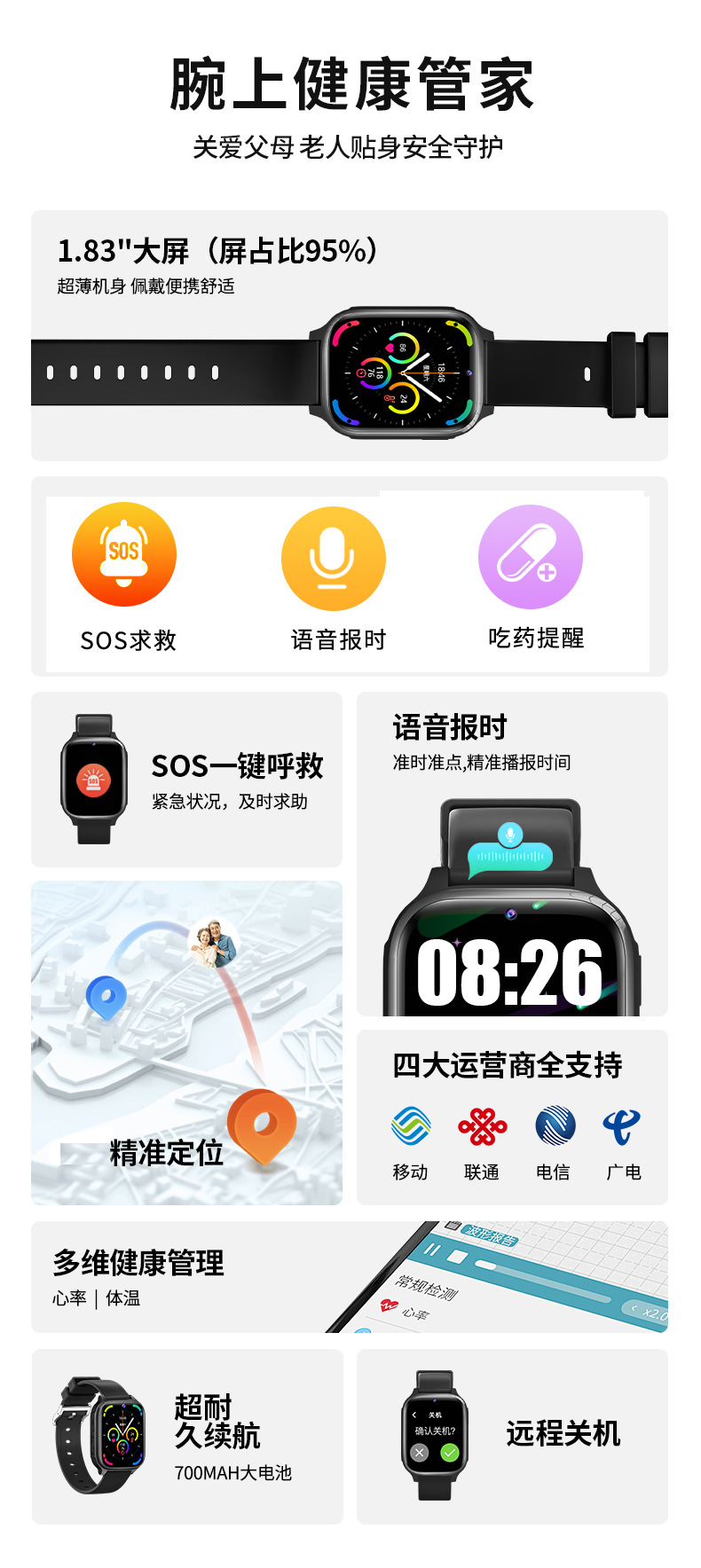 분실 방지 4G 노인 위치 확인 전화 시계 혈압 심박수 화상 통화 팔찌 건강 모니터링 노인에게 적합