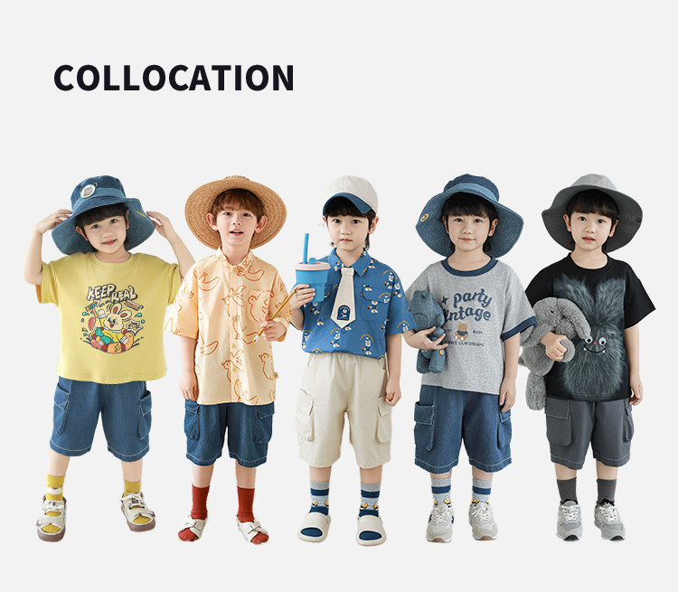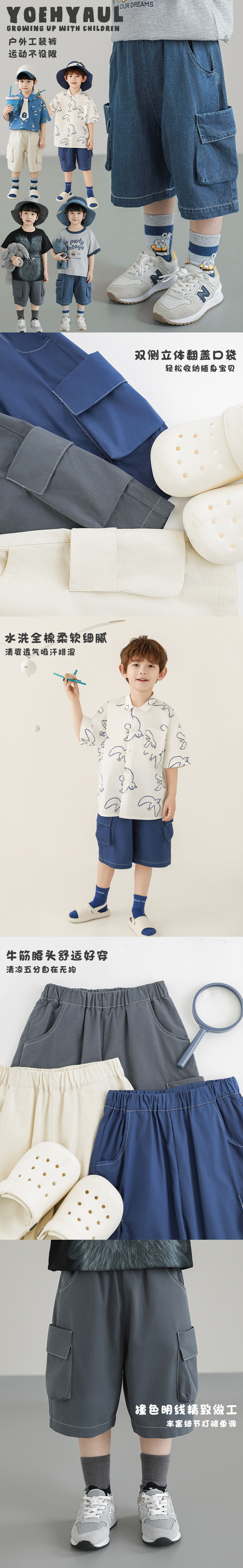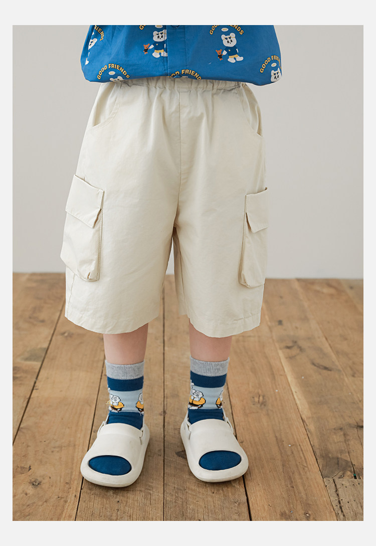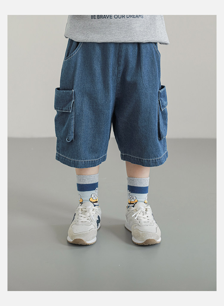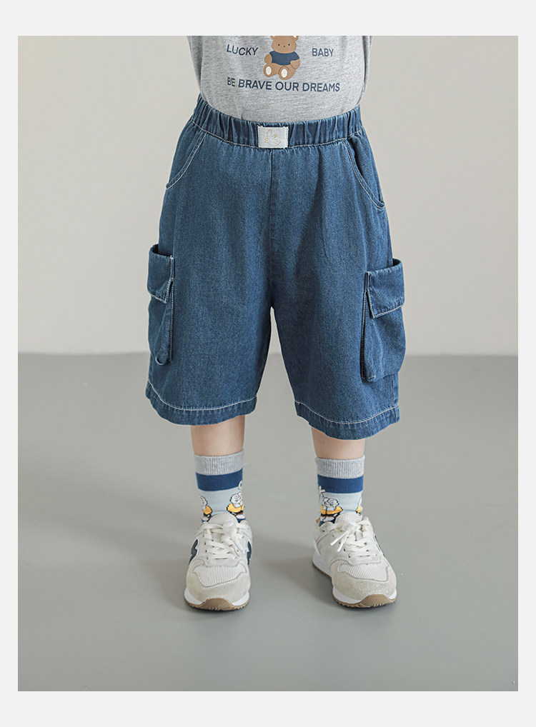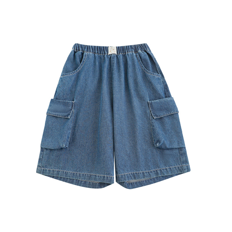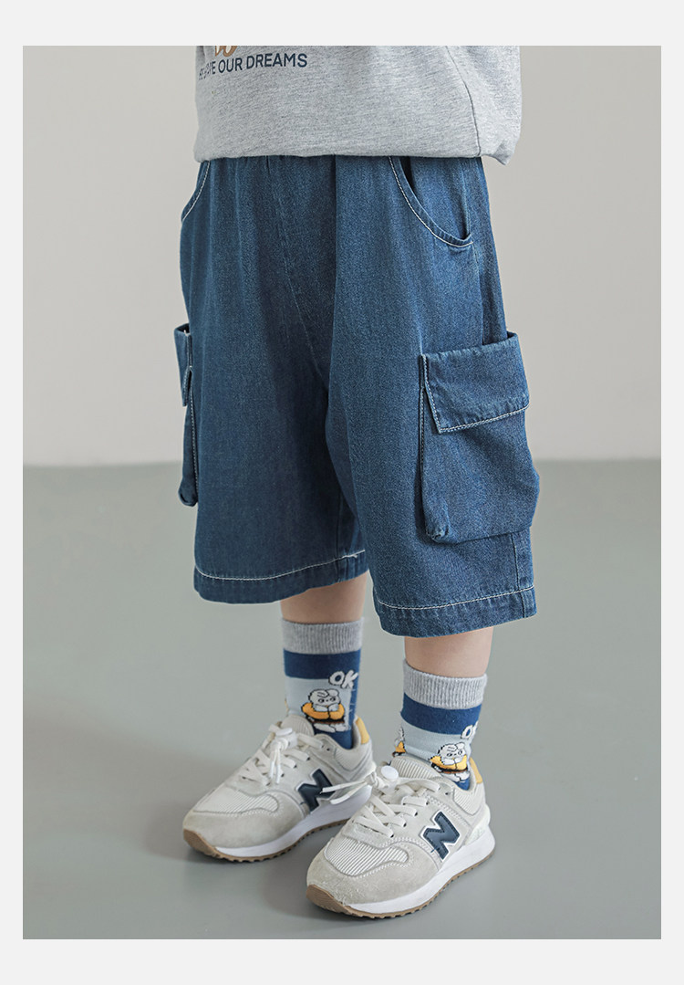 Wulibuyi Boys 2025 새로운 여름 스타일 루즈 스트레이트 오버올 패셔너블하고 시원하며 통기성이 뛰어난 아동용 5부 바지스토어 가기