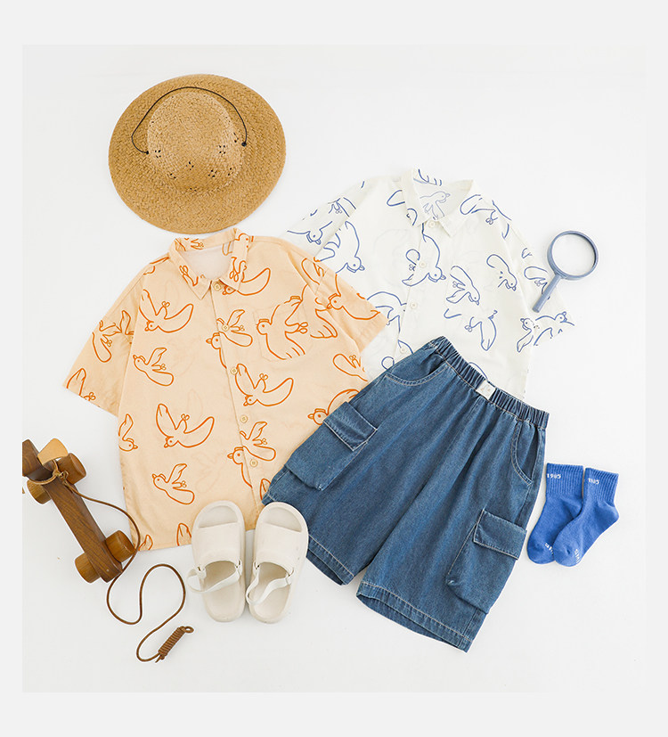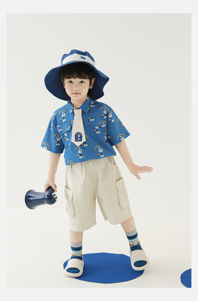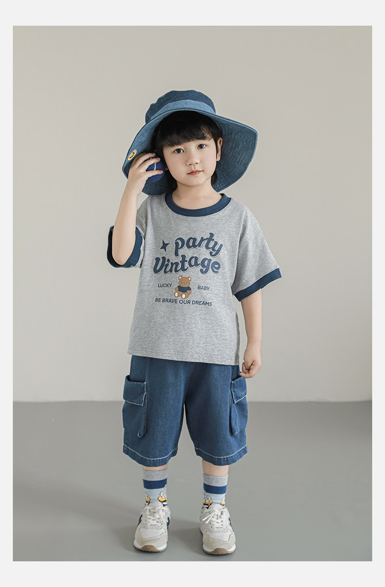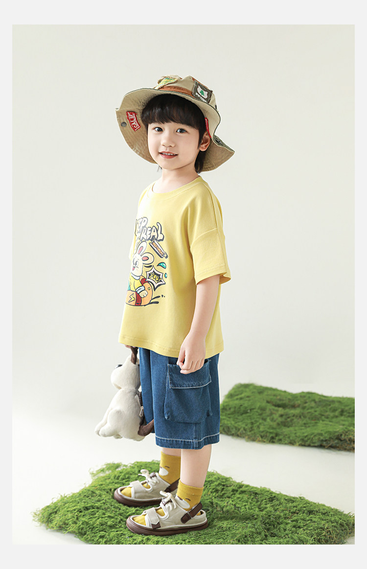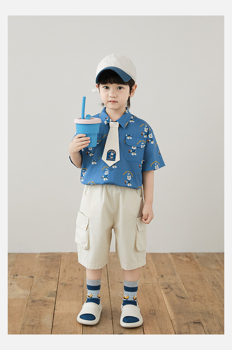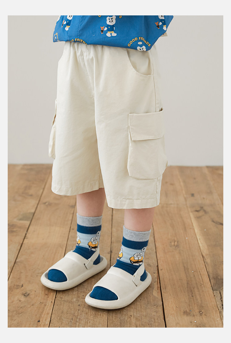 Wulibuyi Boys 2025 새로운 여름 스타일 루즈 스트레이트 오버올 패셔너블하고 시원하며 통기성이 뛰어난 아동용 5부 바지스토어 가기
