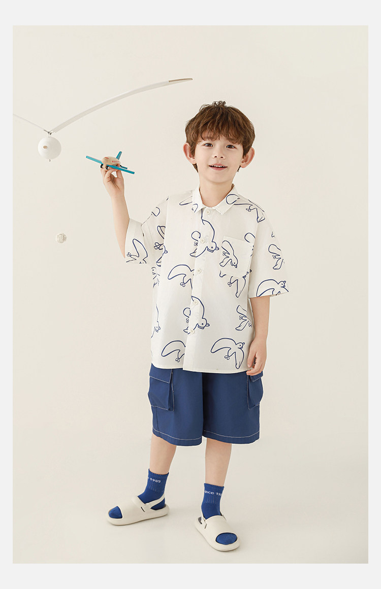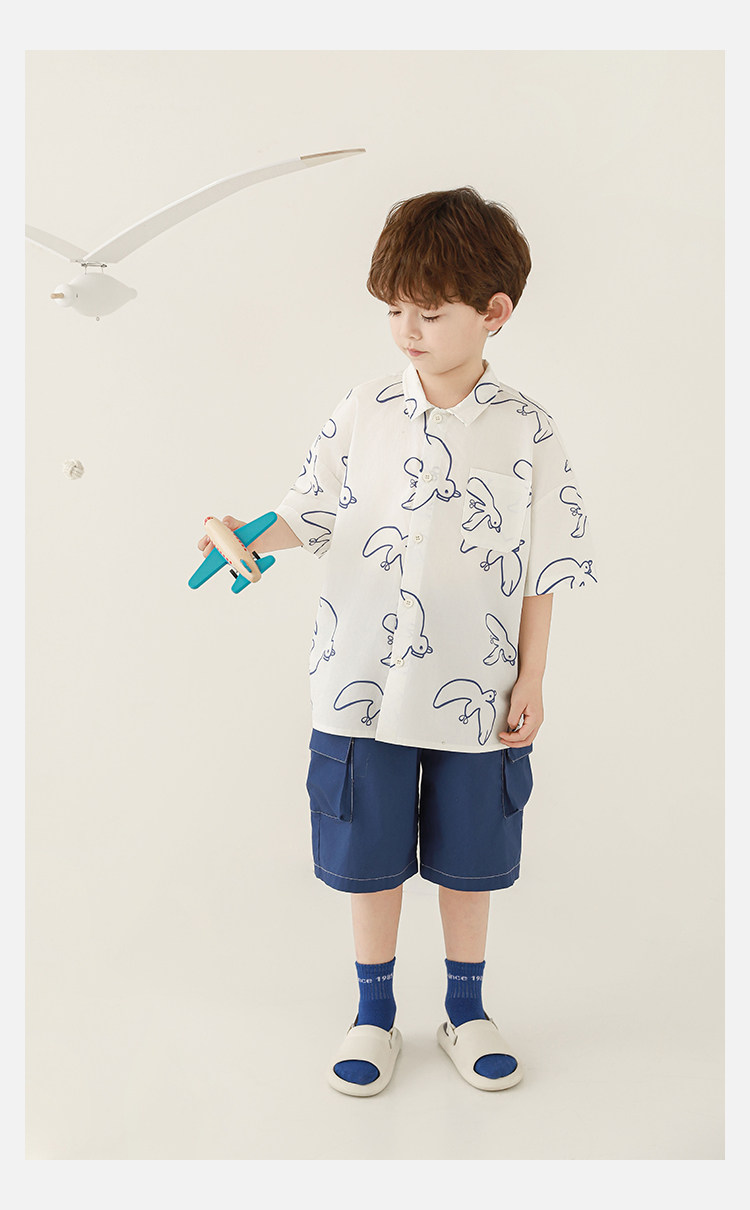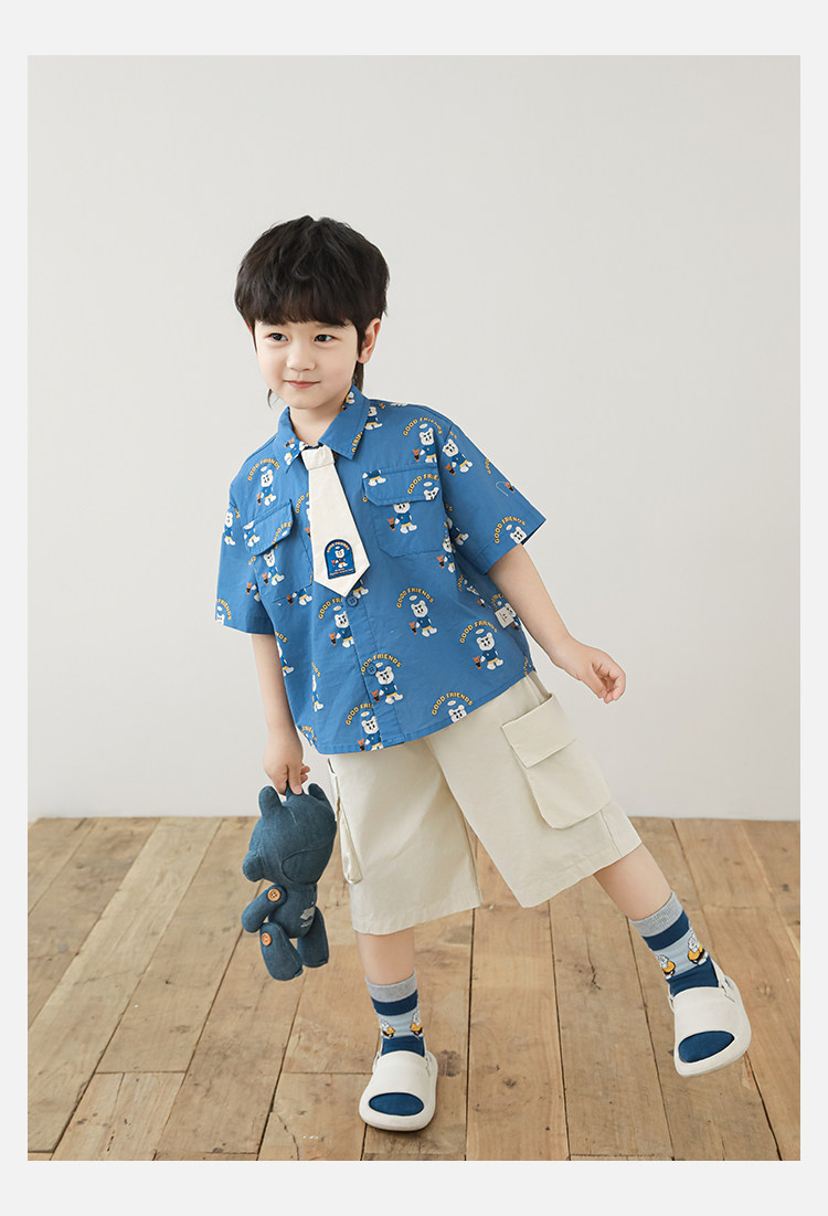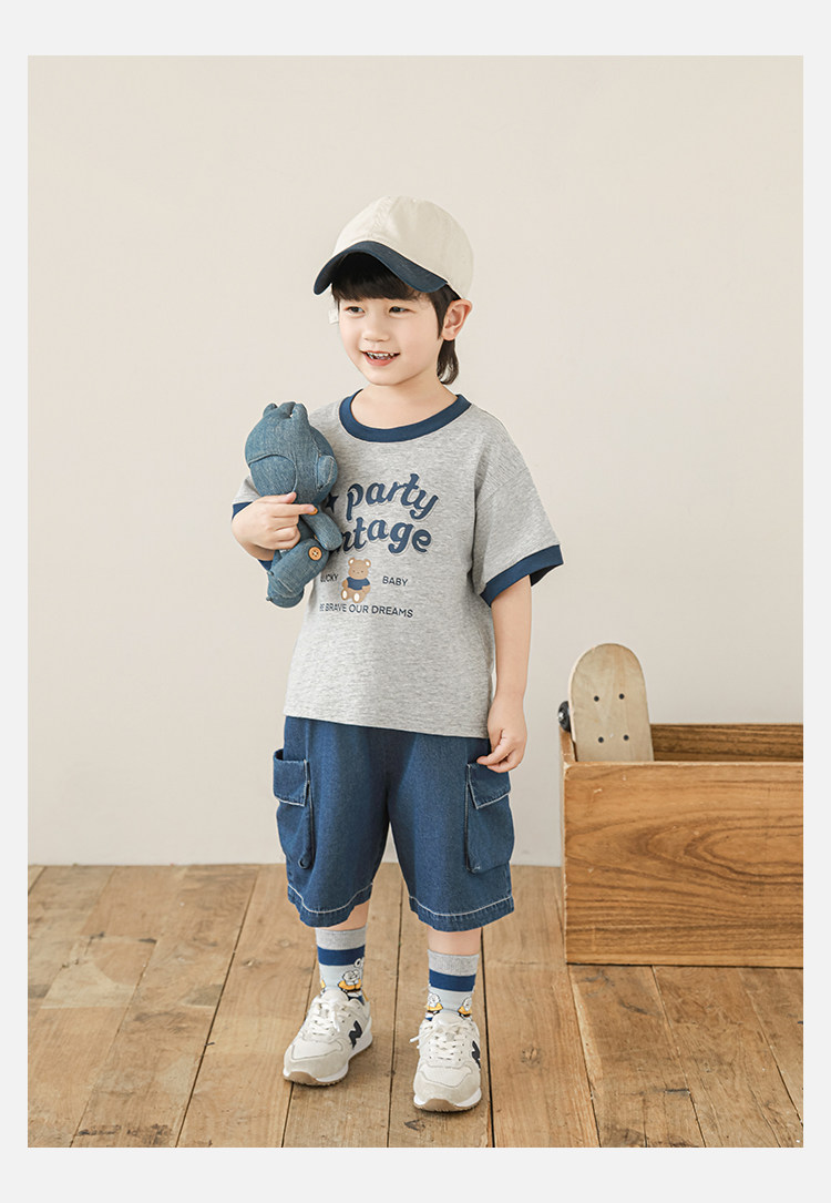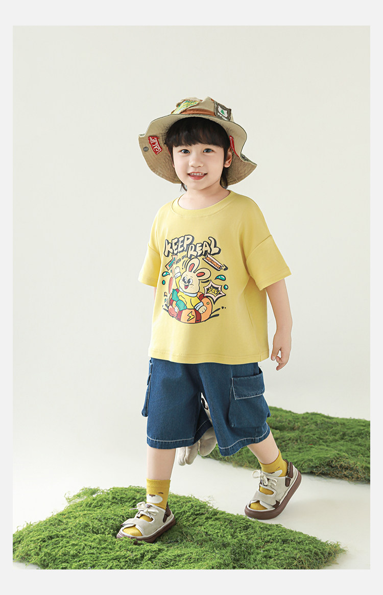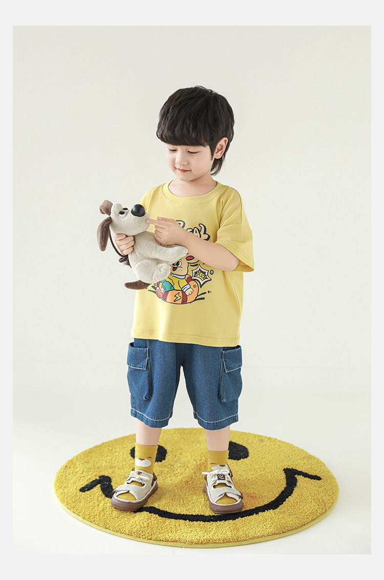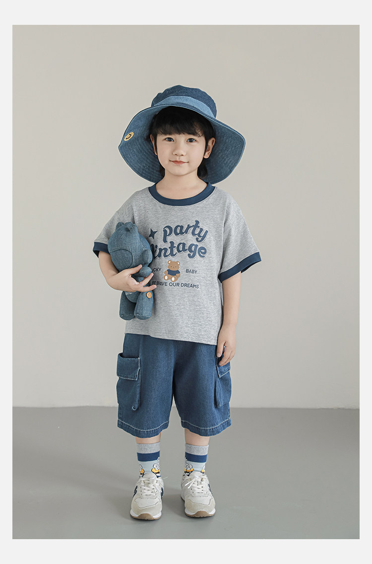 Wulibuyi Boys 2025 새로운 여름 스타일 루즈 스트레이트 오버올 패셔너블하고 시원하며 통기성이 뛰어난 아동용 5부 바지스토어 가기