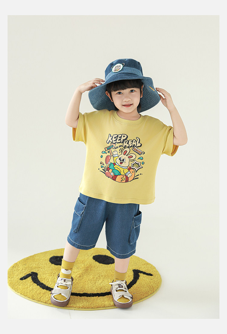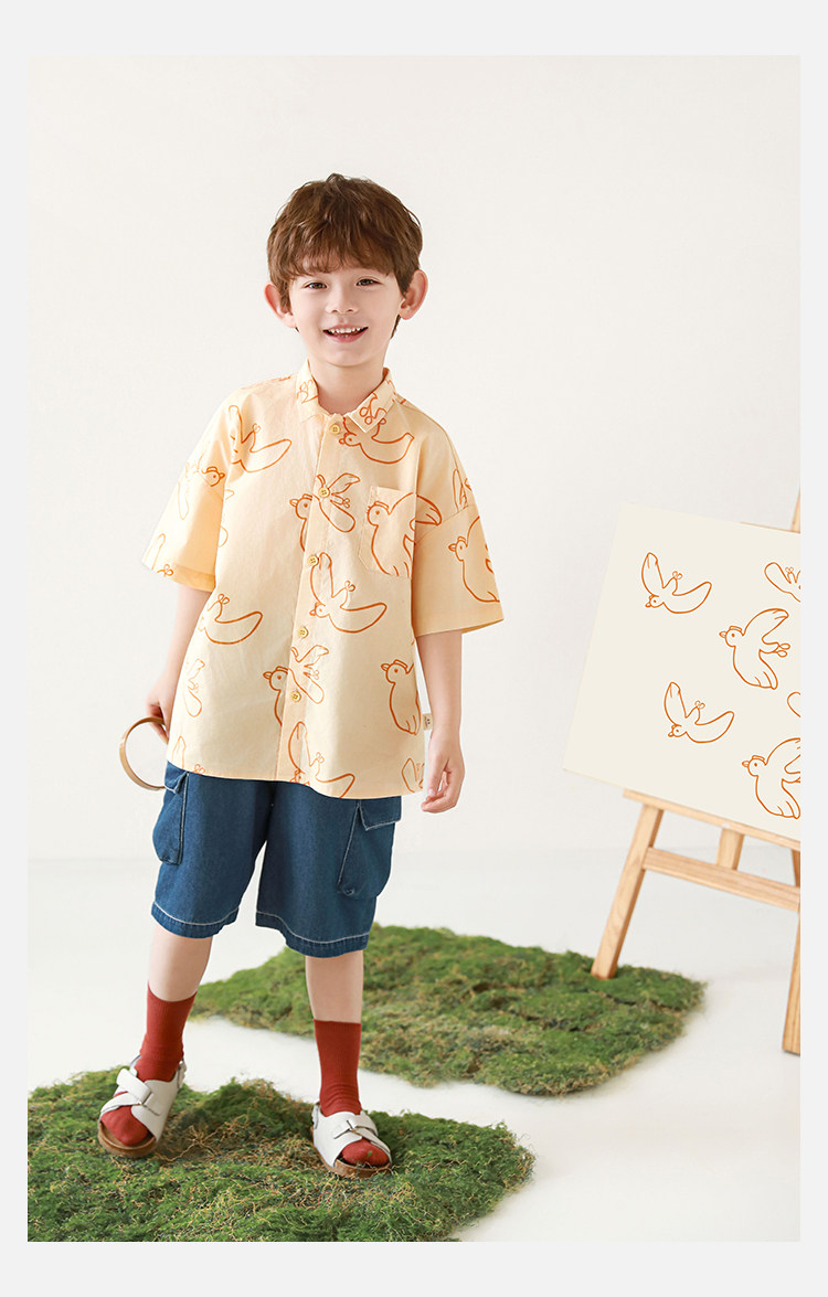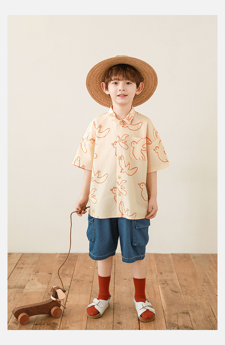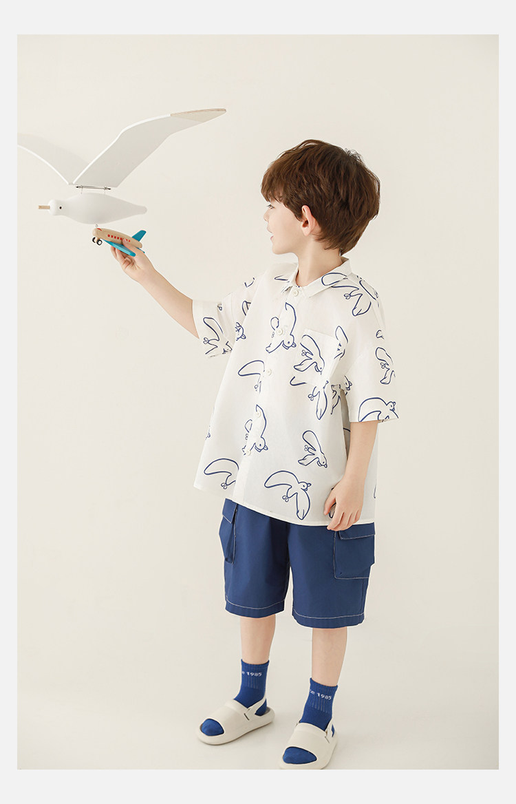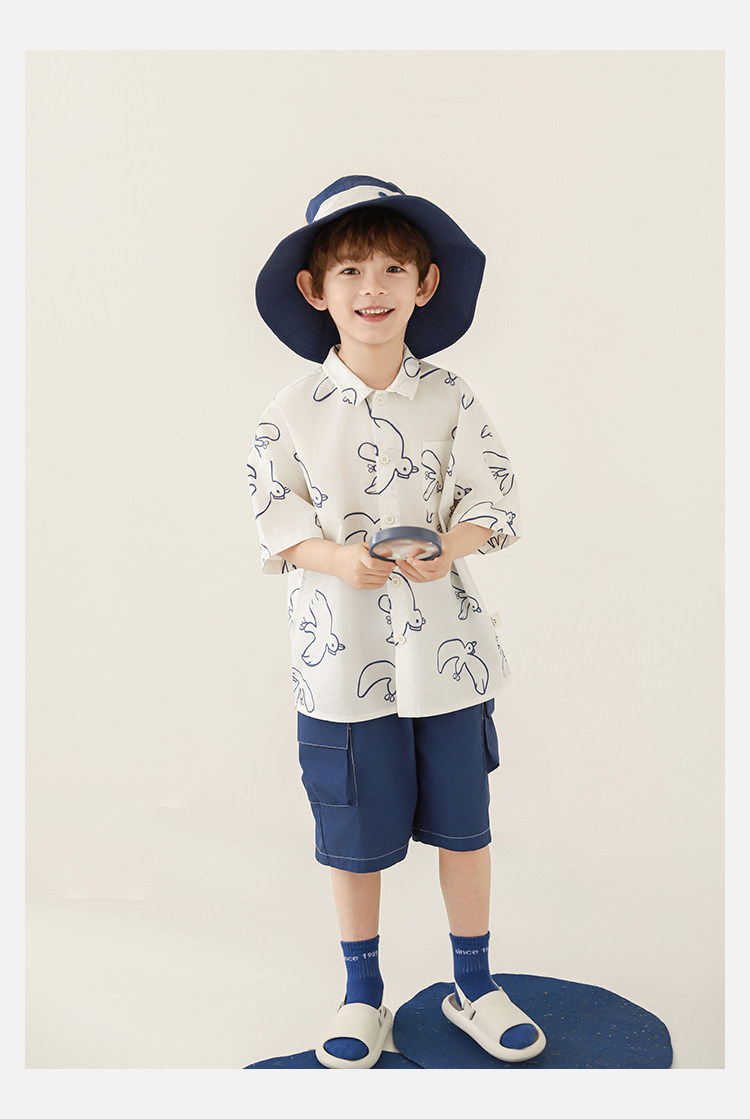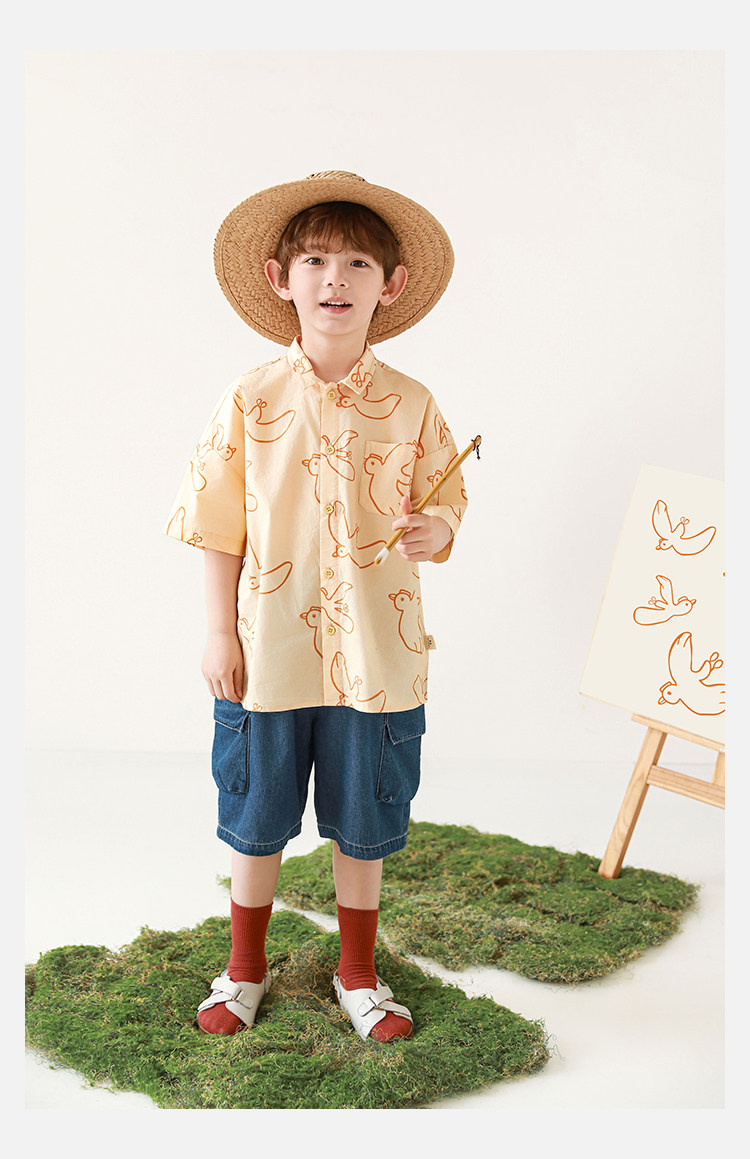 Wulibuyi Boys 2025 새로운 여름 스타일 루즈 스트레이트 오버올 패셔너블하고 시원하며 통기성이 뛰어난 아동용 5부 바지스토어 가기