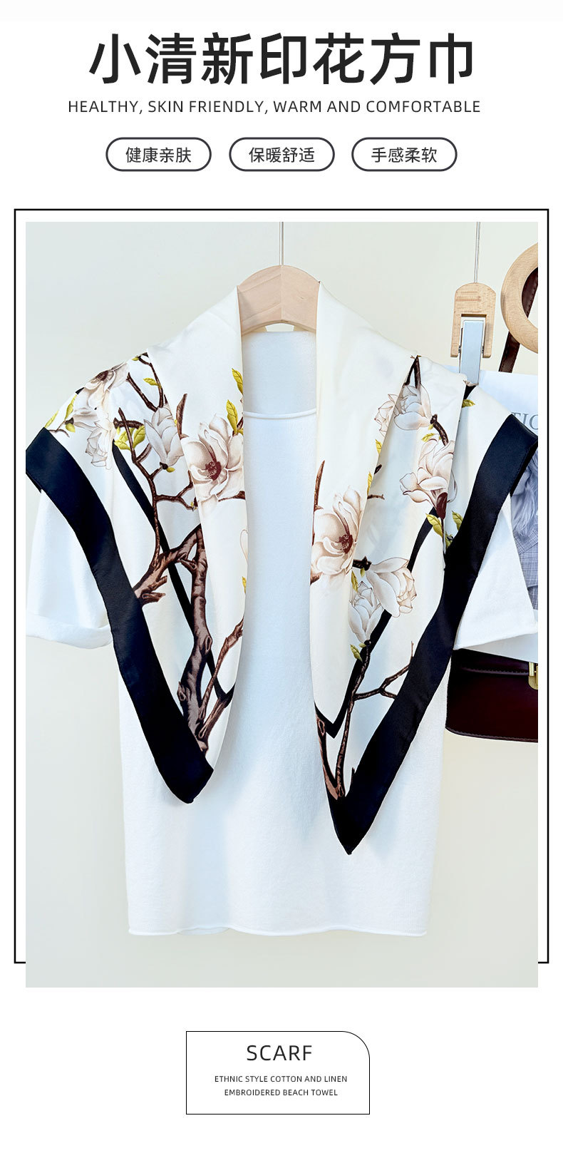 봄과 여름 새로운 신선한 패션 꽃 인쇄 광장 새로운 중국 트렌드 간단한 여성 기질 얇은 목도리