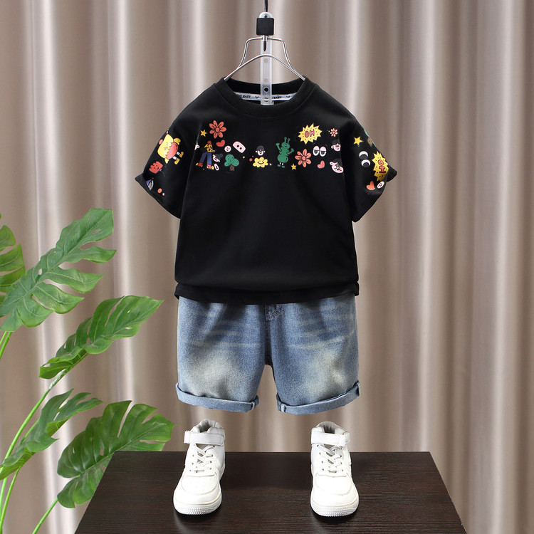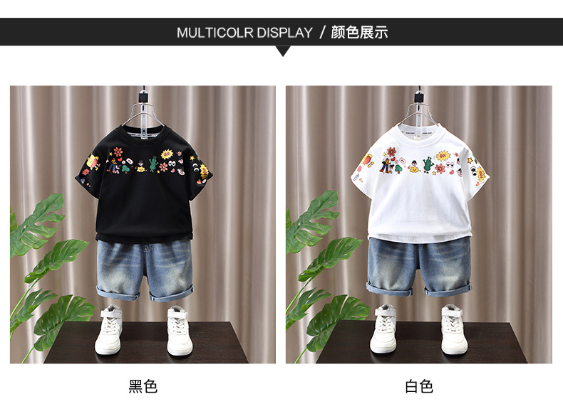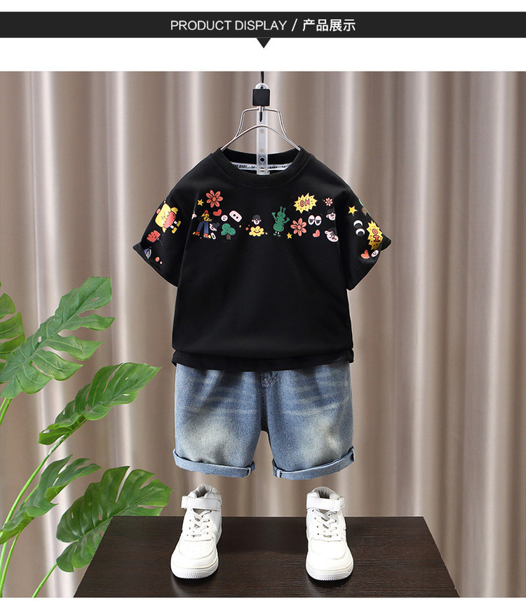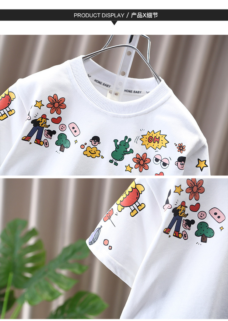 소년 반팔 여름 어린이 만화 티셔츠 2025 새로운 얇은 탑 세련된 아기 반팔 풀오버 3스토어 가기