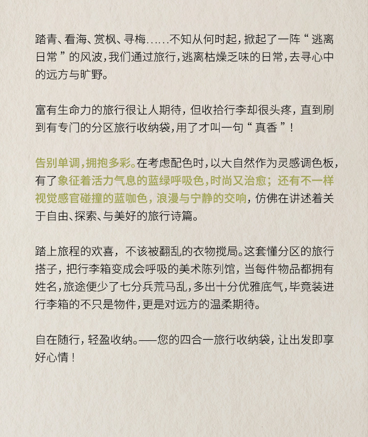 패셔너블한 휴대용 여행용 수납가방, 출장 속옷 포장 및 정리, 여행가방 수납가방 세트, 4-in-1스토어 가기