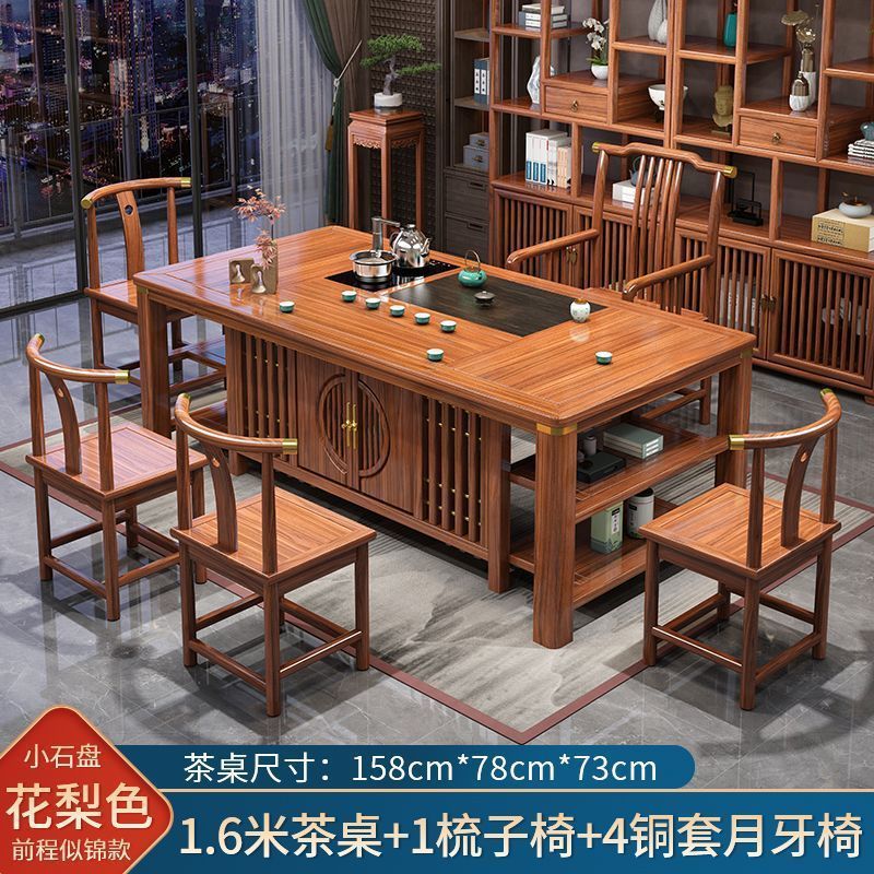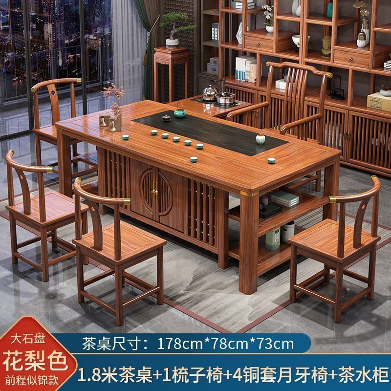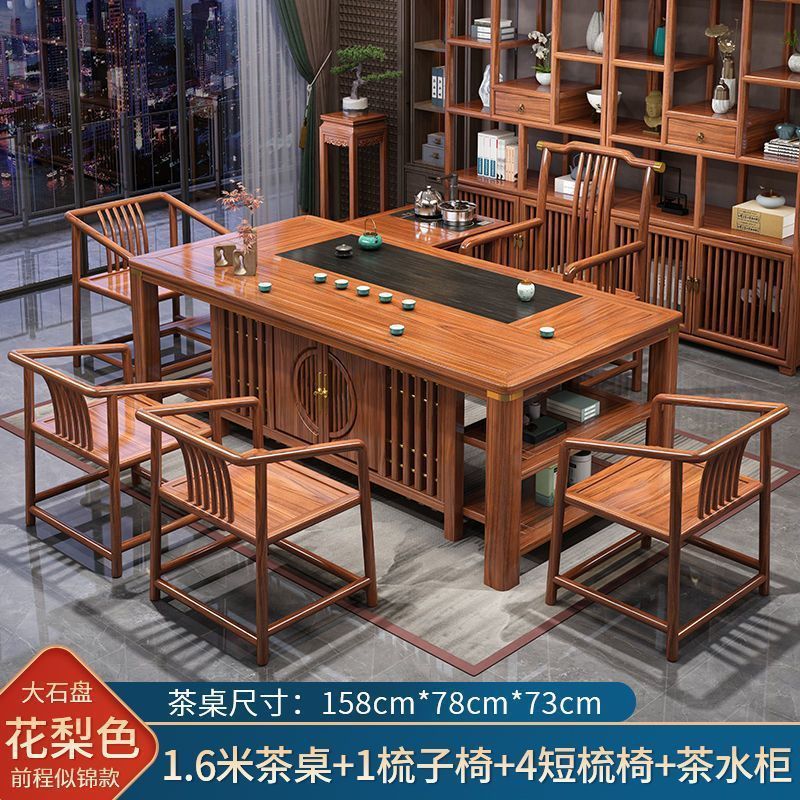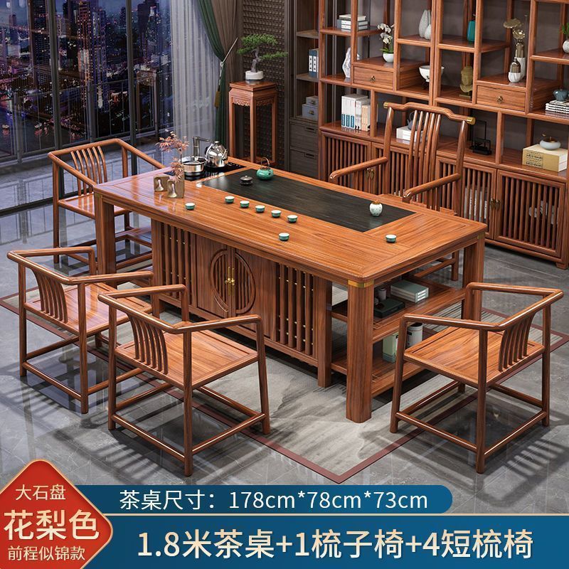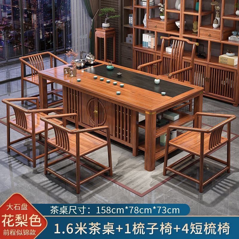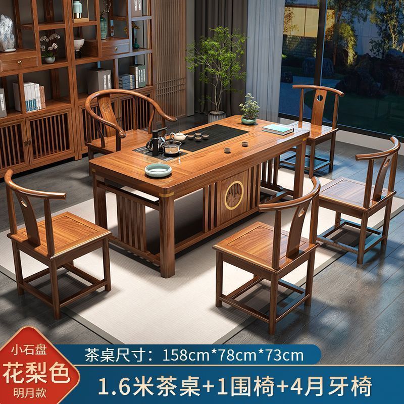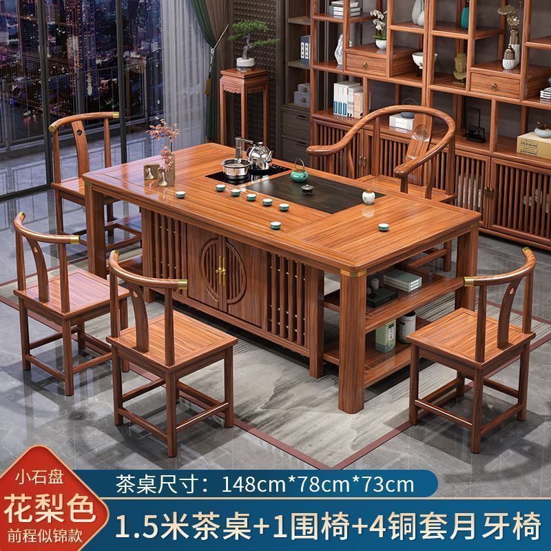 단단한 나무 티 테이블과 의자 조합 새로운 중국 스타일의 티 테이블 사무실 티 테이블 가정용 티 세트 통합 선티 티 테이블스토어 가기