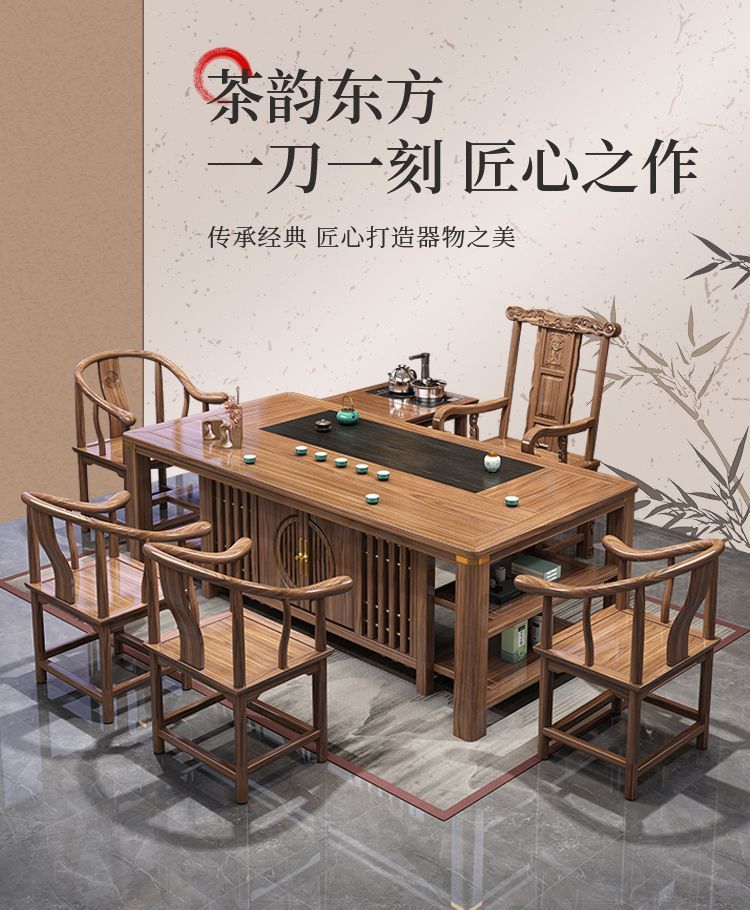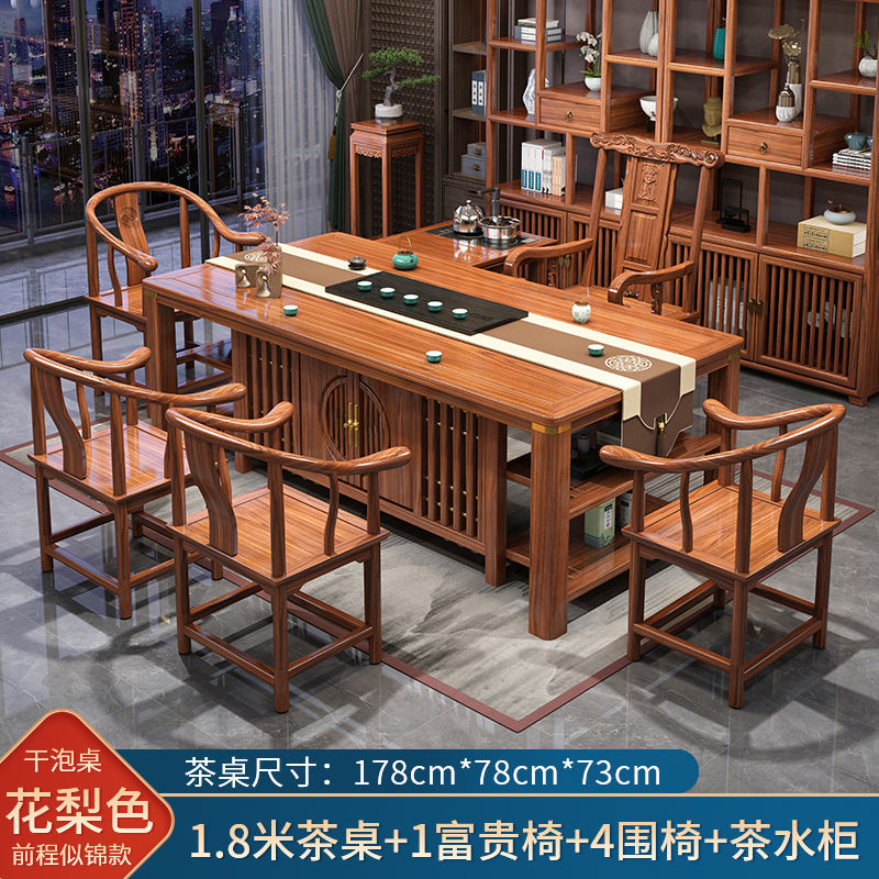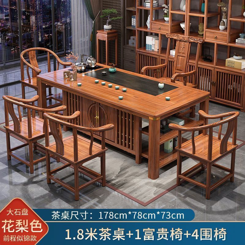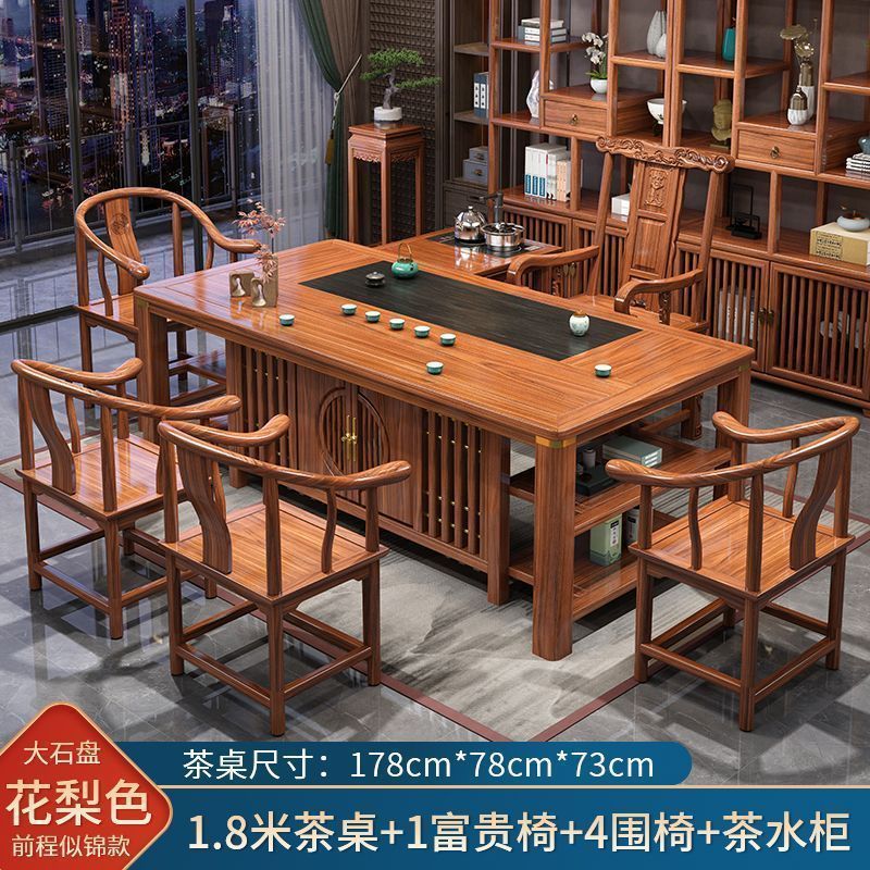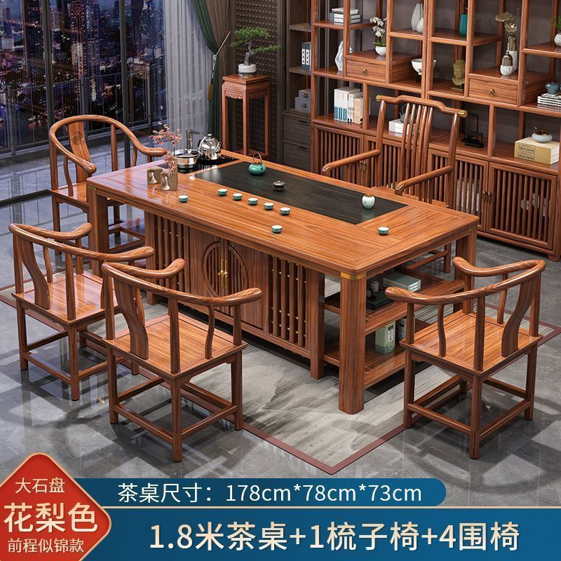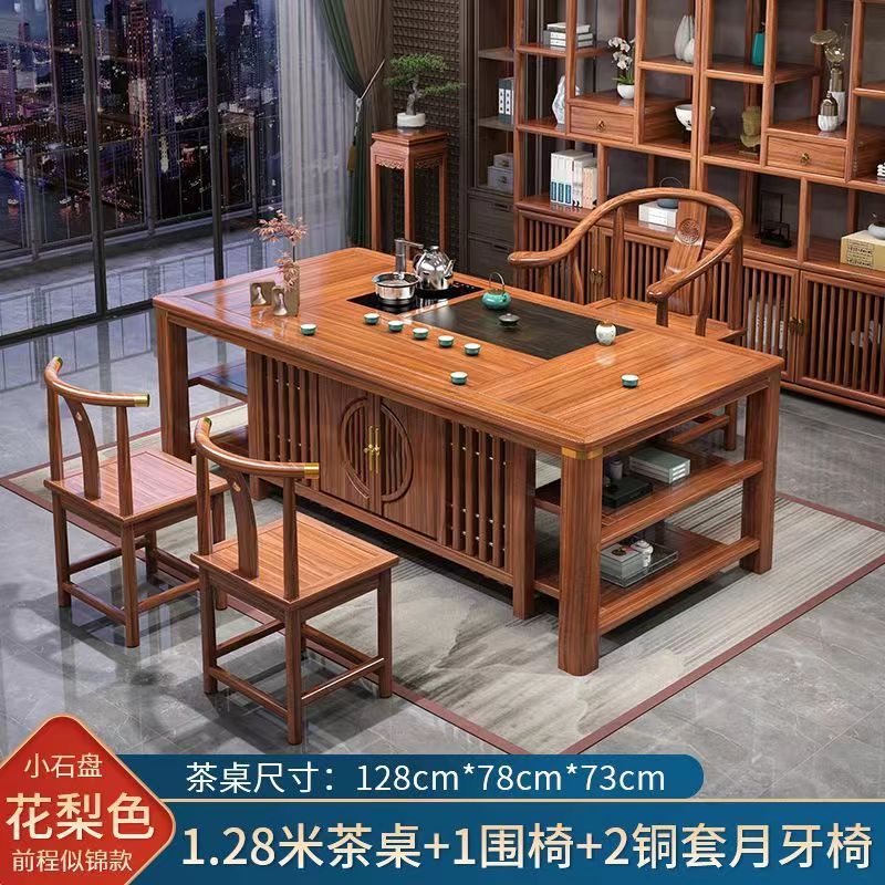 단단한 나무 티 테이블과 의자 조합 새로운 중국 스타일의 티 테이블 사무실 티 테이블 가정용 티 세트 통합 선티 티 테이블스토어 가기