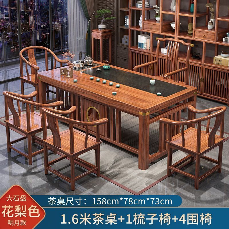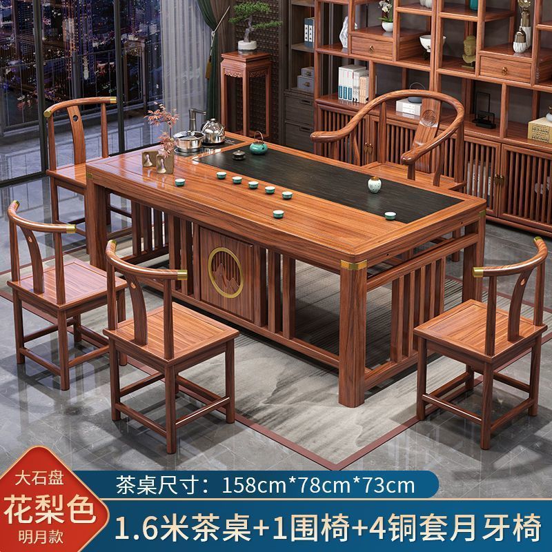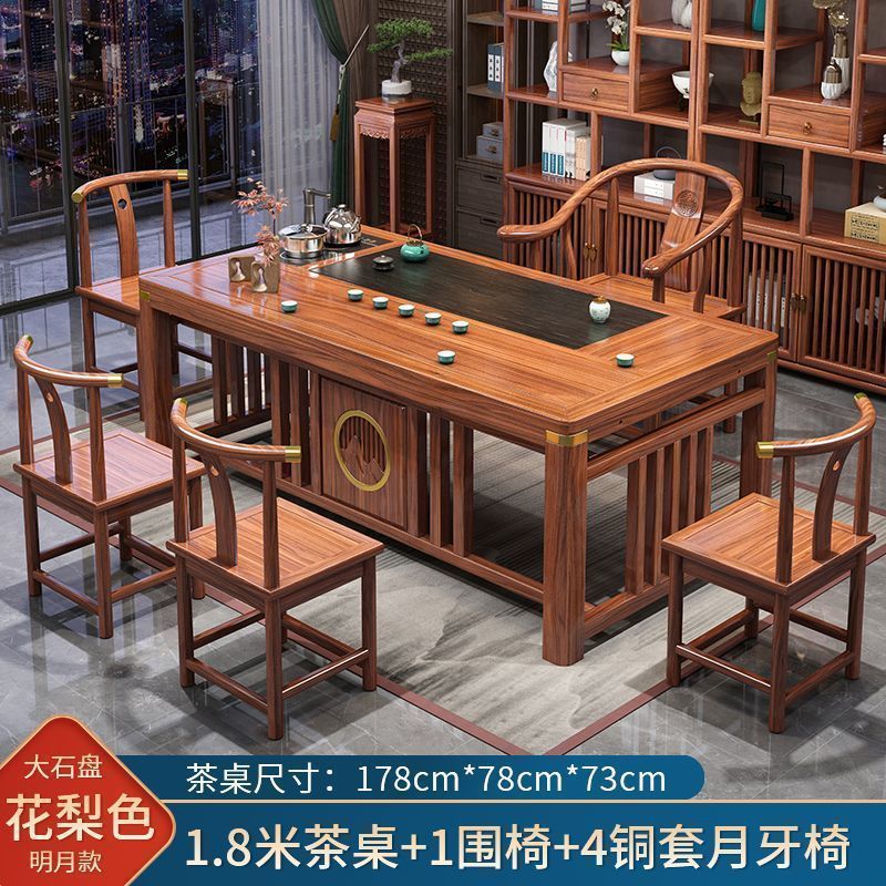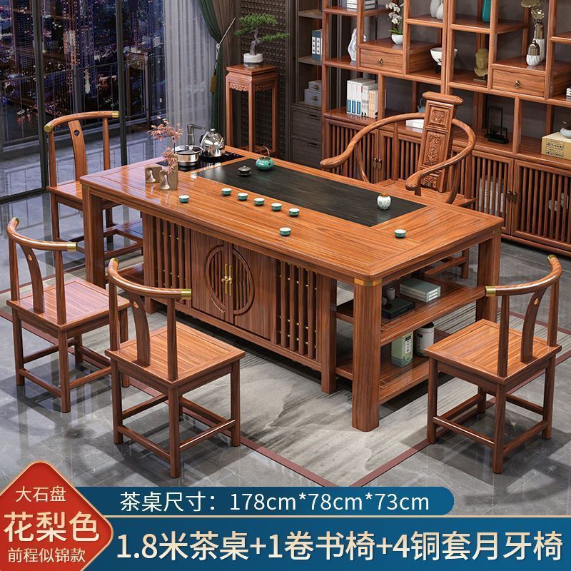 단단한 나무 티 테이블과 의자 조합 새로운 중국 스타일의 티 테이블 사무실 티 테이블 가정용 티 세트 통합 선티 티 테이블