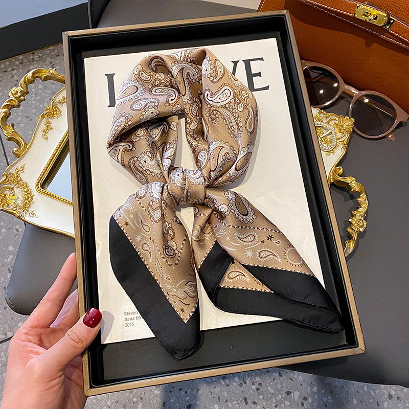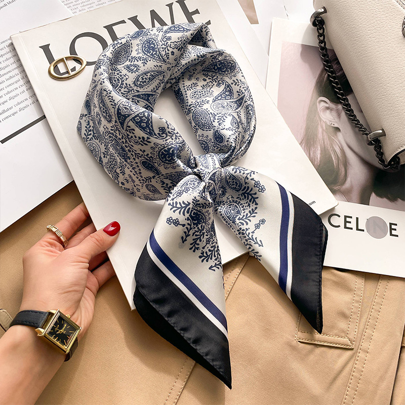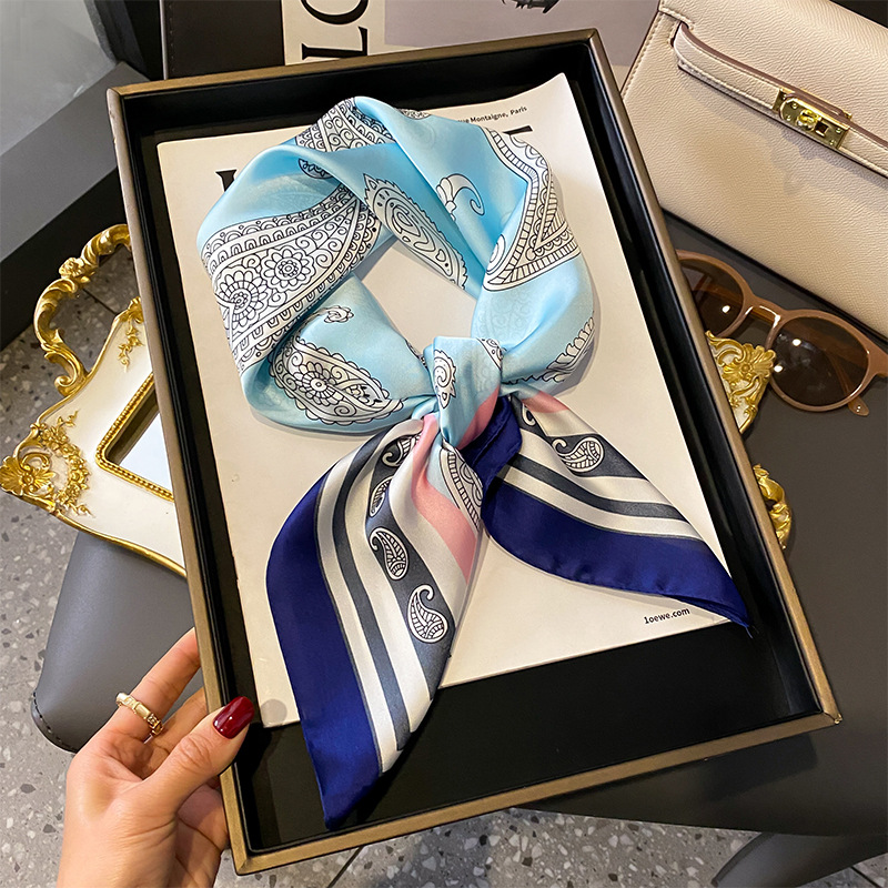 Zhang Ruonan의 같은 스타일 실크 스카프 넥 하이 엔드 여성 2025 새로운 작은 사각형 스카프 세련되고 다재다능한 셔츠 스카프 머리띠