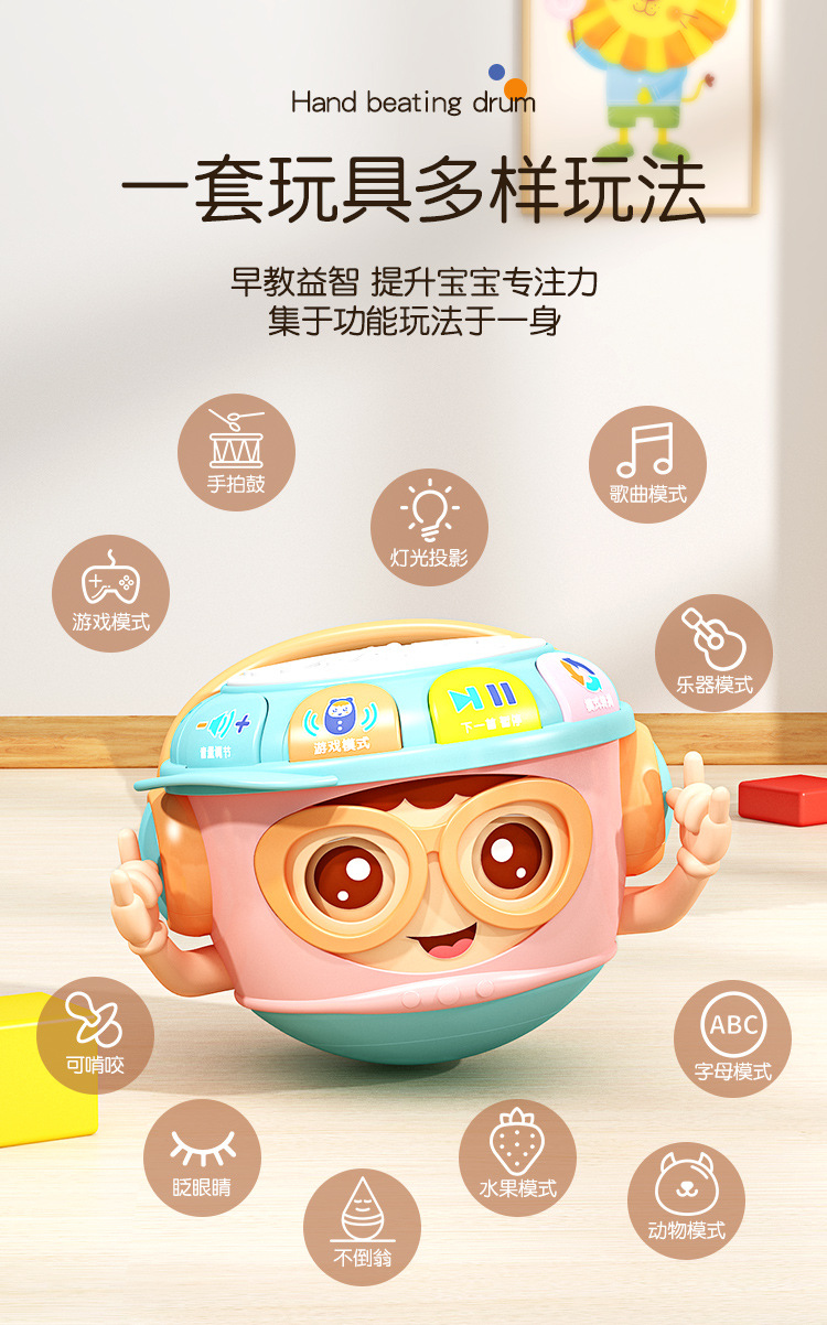 어린이 텀블러 핸드 드럼 교육 조기 교육 0-1 세 아기 음악 드럼 3-6 개월 아기 장난감스토어 가기