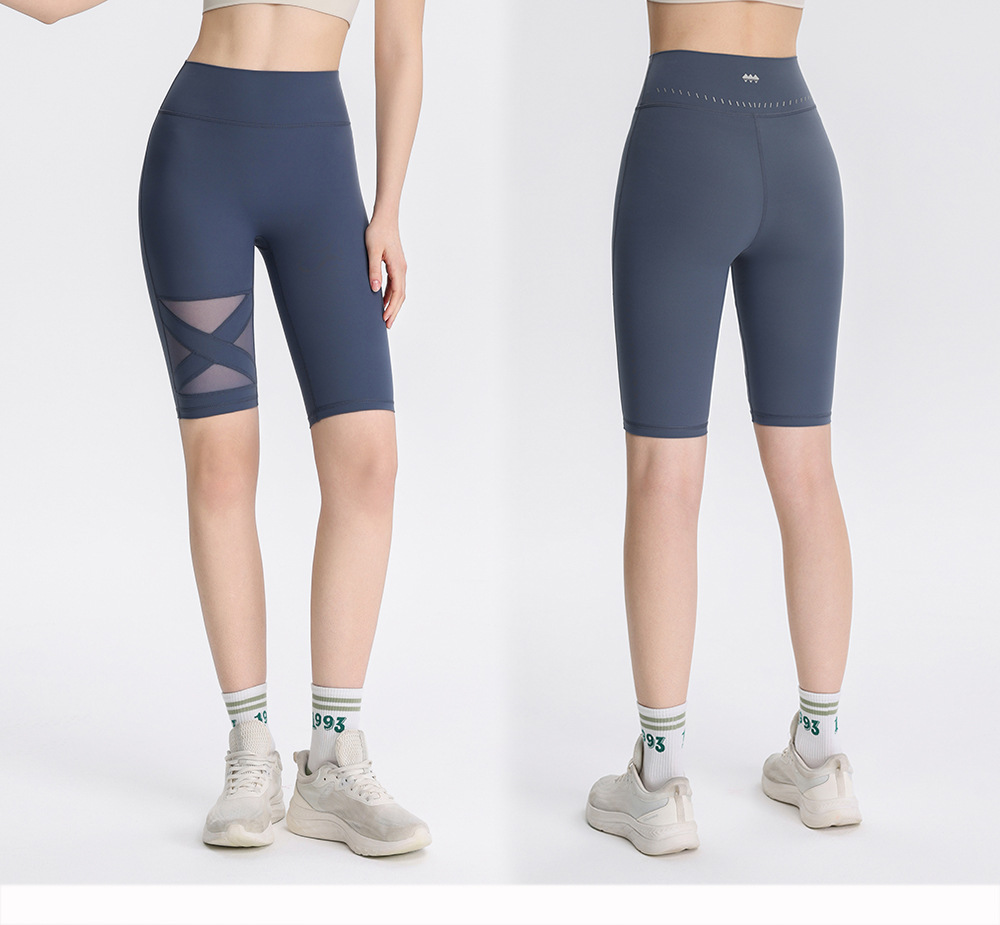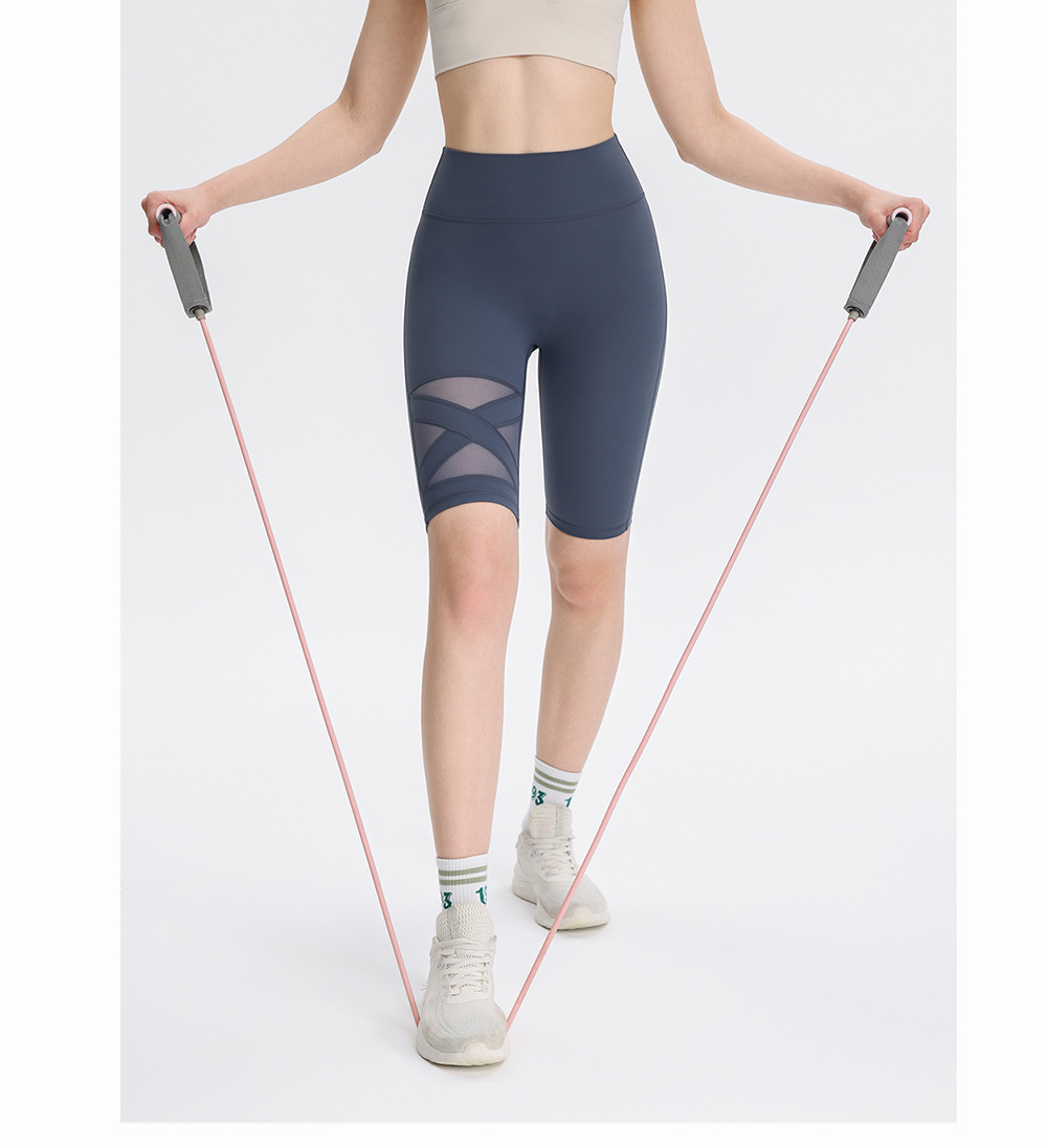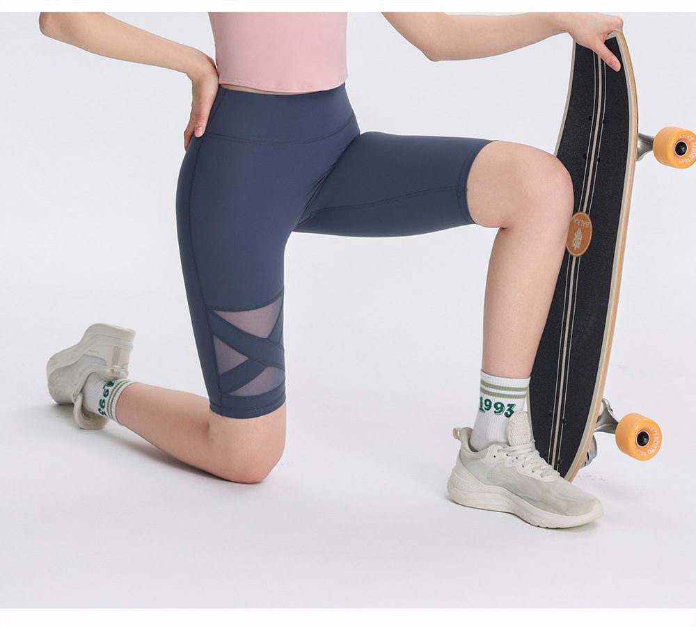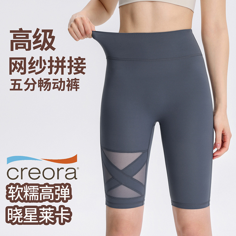 메쉬 스플라이싱 여성용 5부 요가 팬츠, 하이 웨이스트 복숭아 엉덩이 리프팅 야외 러닝 스포츠 사이클링 네이키드 피트니스 반바지스토어 가기