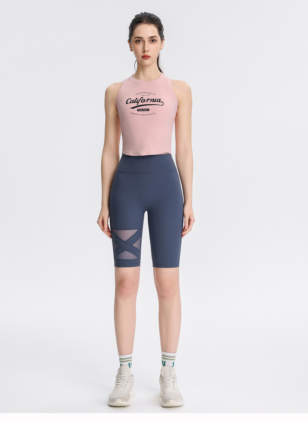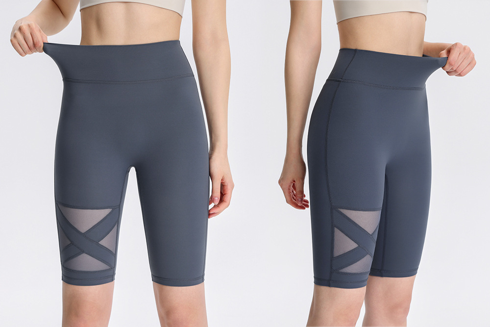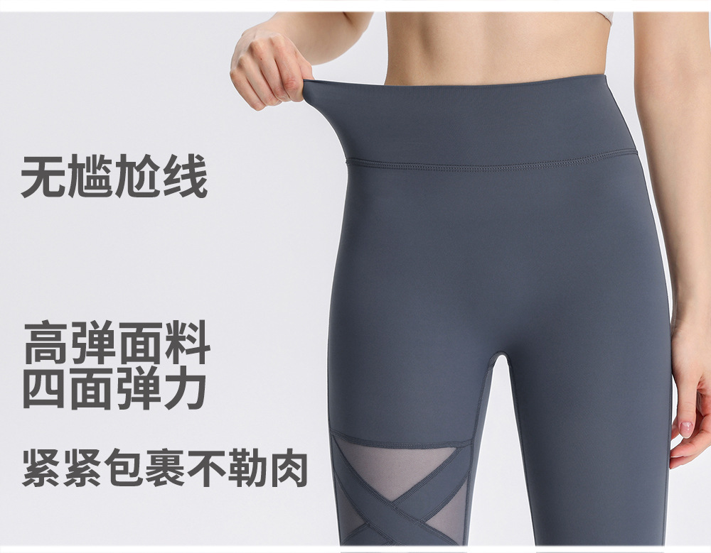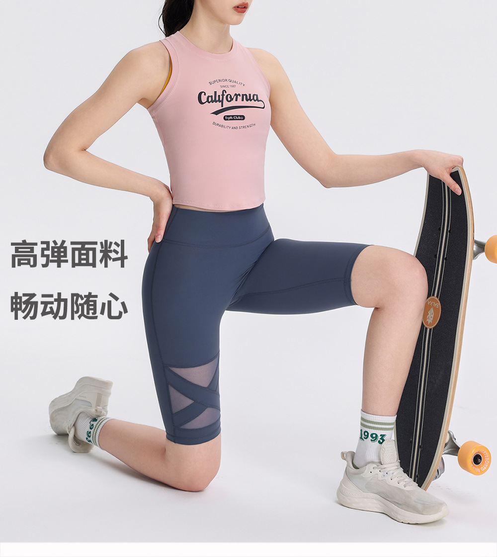 메쉬 스플라이싱 여성용 5부 요가 팬츠, 하이 웨이스트 복숭아 엉덩이 리프팅 야외 러닝 스포츠 사이클링 네이키드 피트니스 반바지스토어 가기