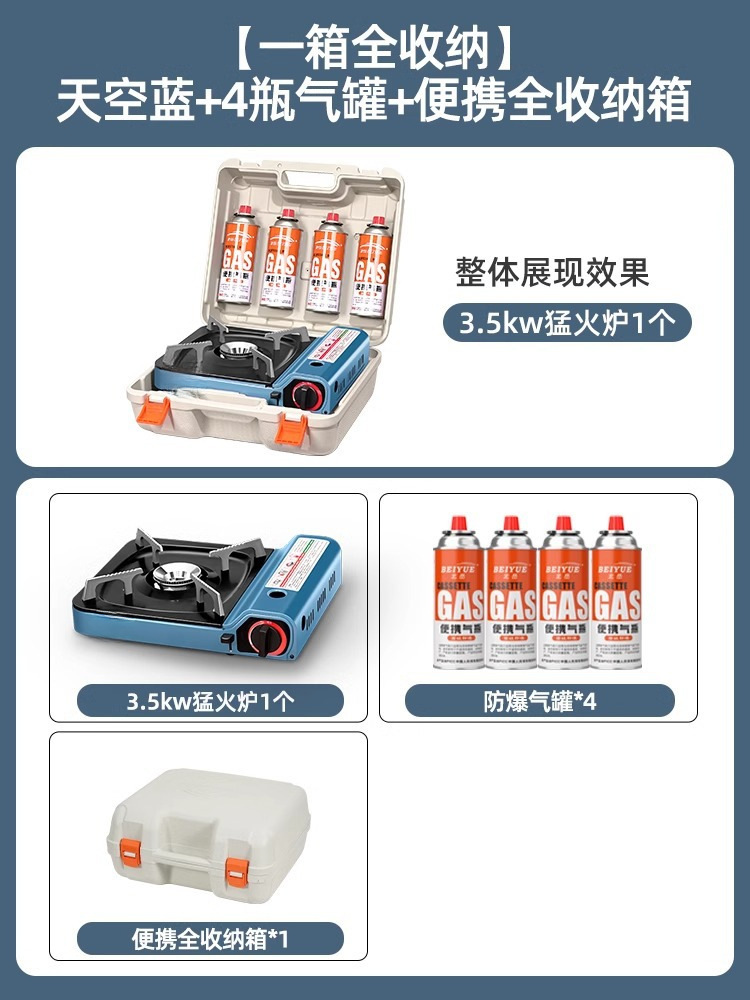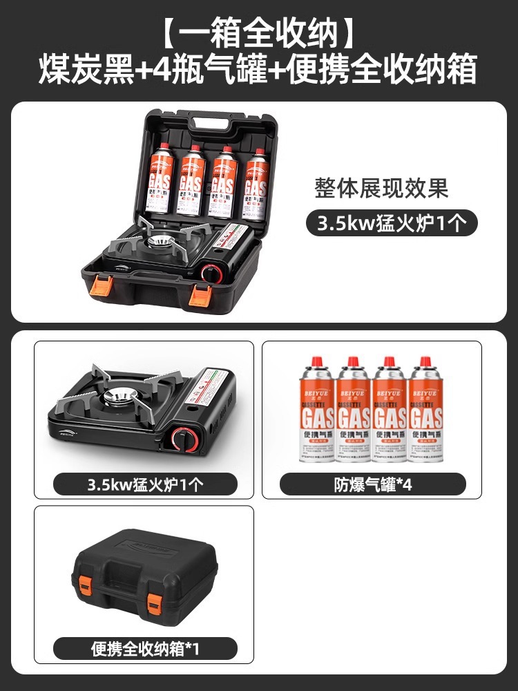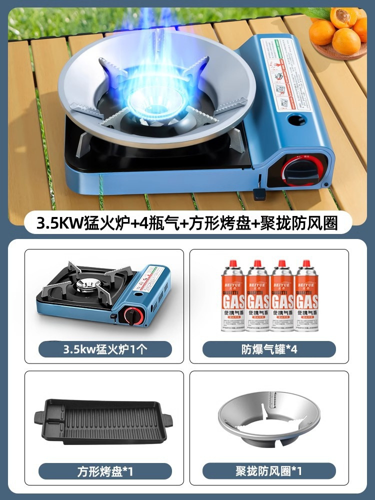 • 3500W 강력한 스토브 + 가스 4병 + 사각 베이킹 팬 + 집결 방풍 링
