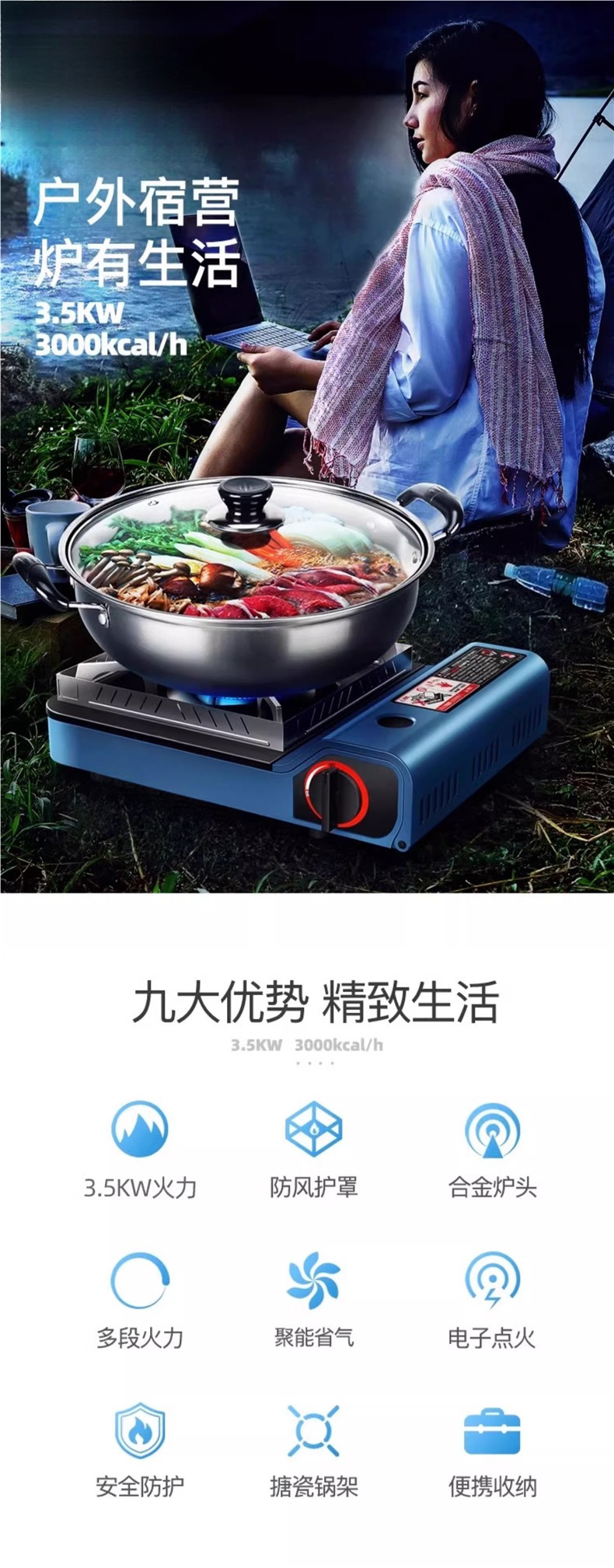 • 3500W 강력난로 + 가스 4병 + 맑은 국물 냄비 + 집결 방풍 링