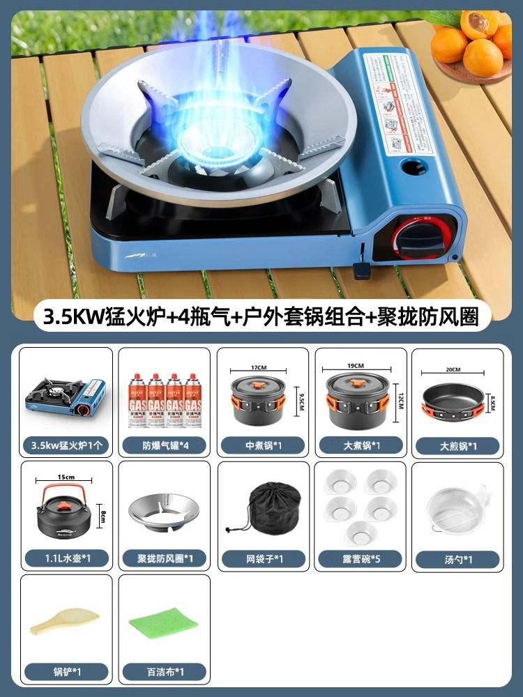 • 3500W 강력한 난로 + 가스 4병 + 실외 냄비 세트 + 집결 방풍 링