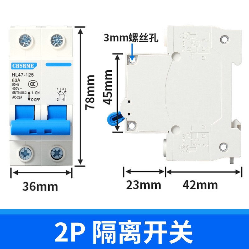 전기 토치 스위치 HL47-125 소형 절연 스위치 1P2P3P4P63A 누전 방지 장치 회로 차단기스토어 가기