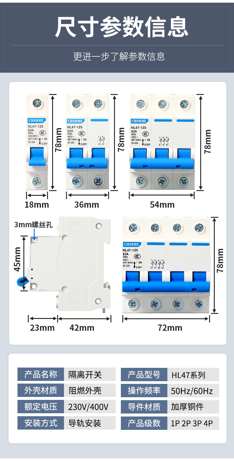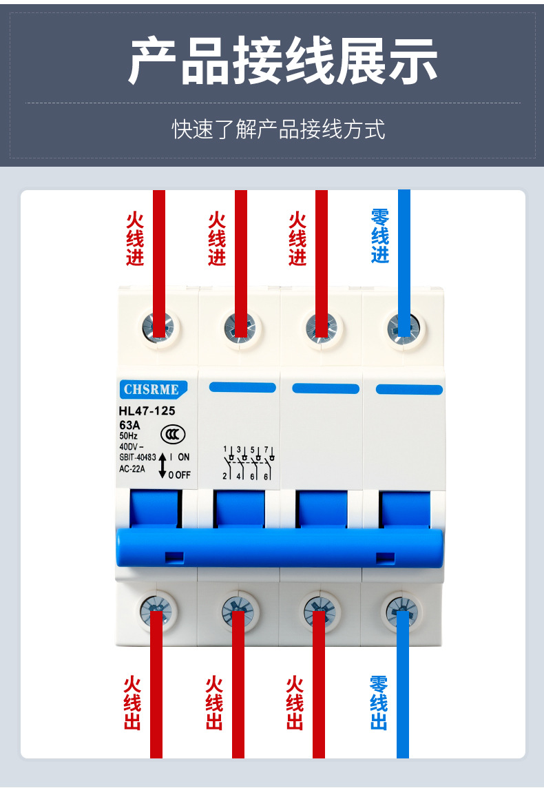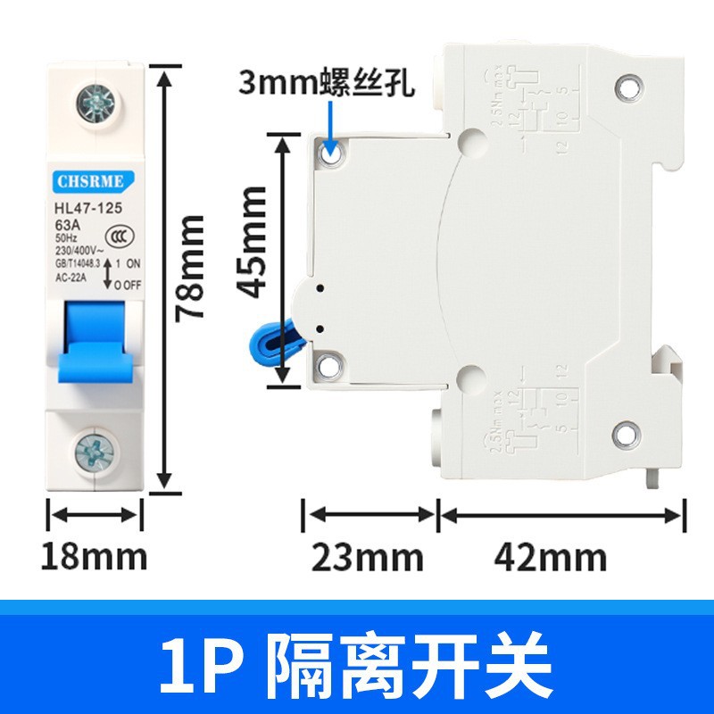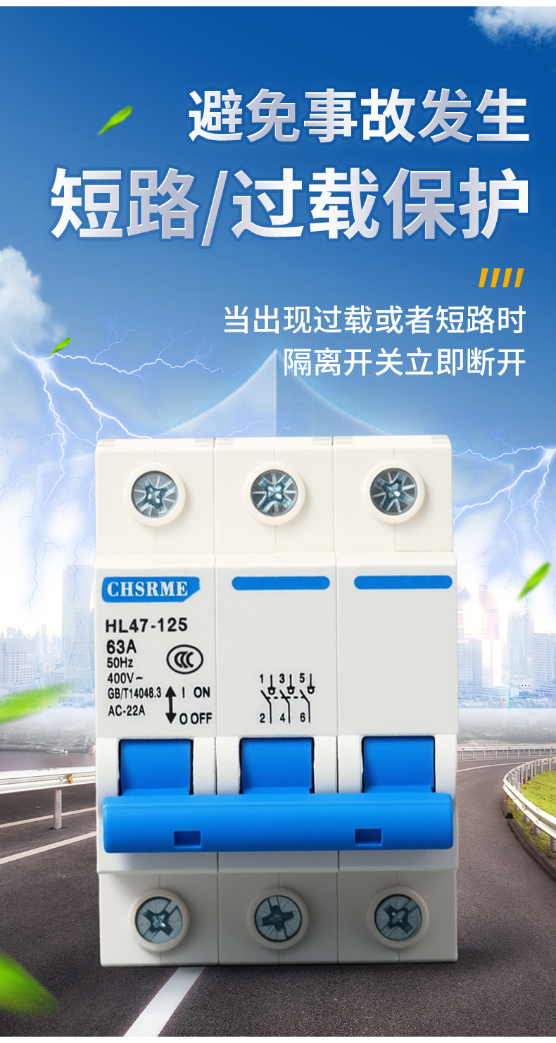 전기 토치 스위치 HL47-125 소형 절연 스위치 1P2P3P4P63A 누전 방지 장치 회로 차단기