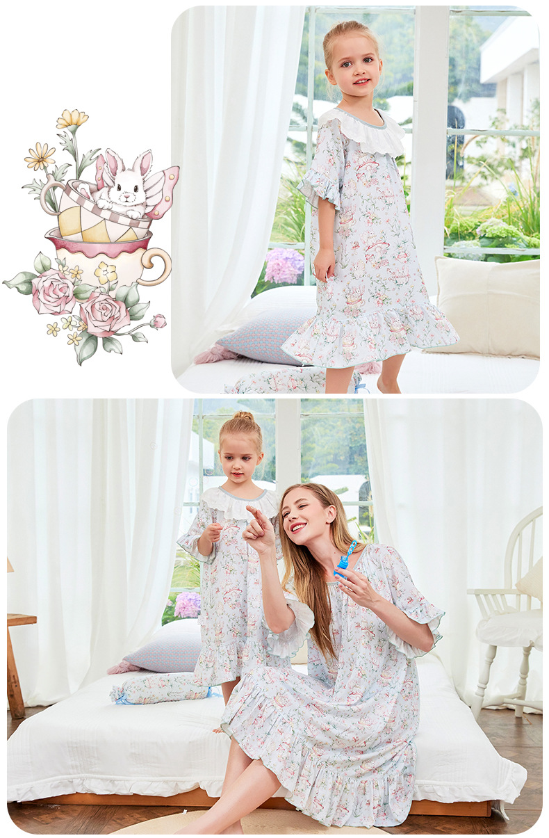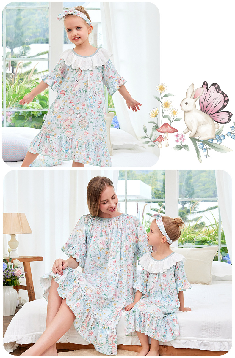 • 부모-자식 잠옷 대나무 면 모달 토끼 정원