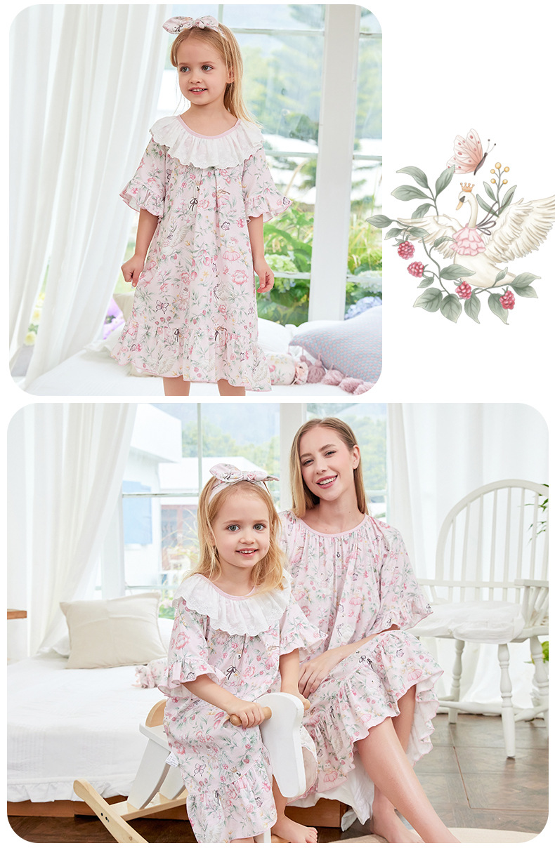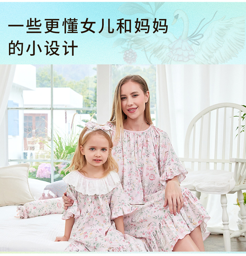 • 부모-자식 잠옷 대나무 면 모달 백조의 댄스