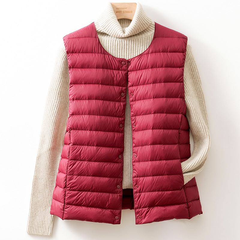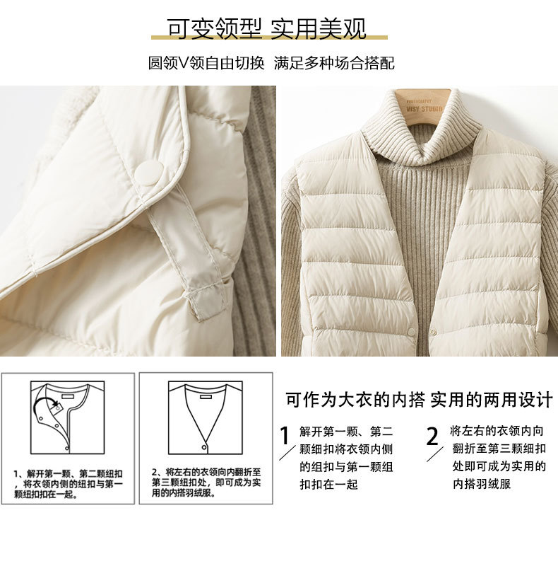 90 벨벳 2025 가을 겨울 라이트 다운 조끼 여성용 다운 조끼 여성용 새 다운 라이너 여성용 짧은 이너웨어
