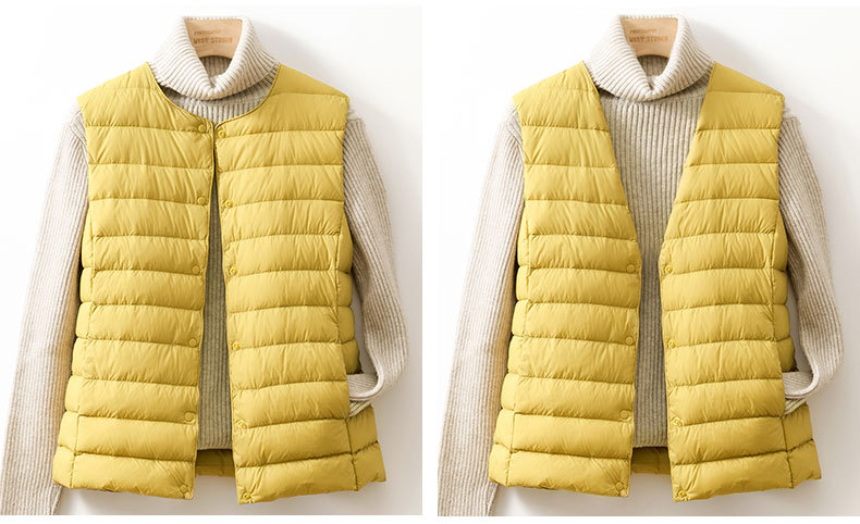 90 벨벳 2025 가을 겨울 라이트 다운 조끼 여성용 다운 조끼 여성용 새 다운 라이너 여성용 짧은 이너웨어스토어 가기