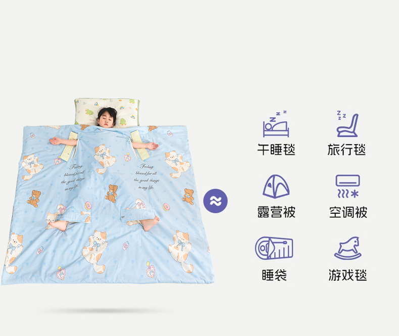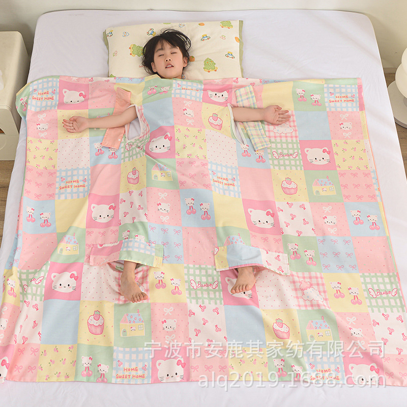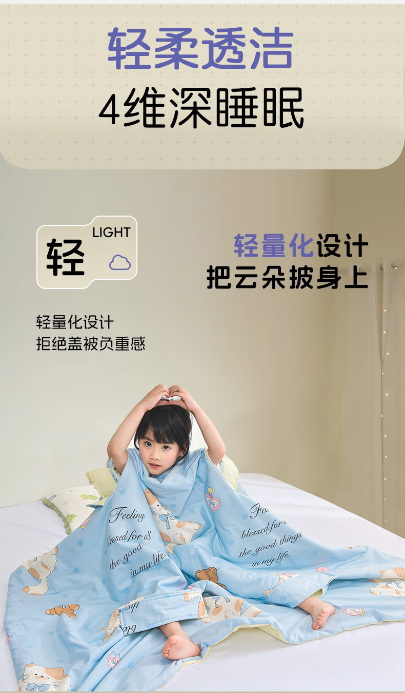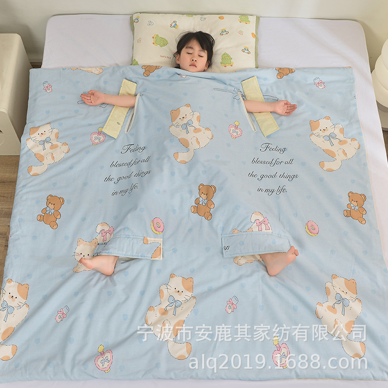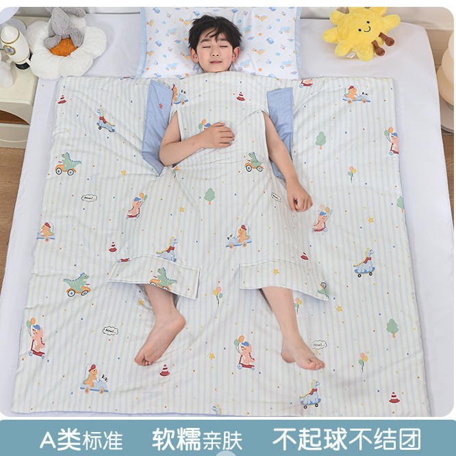 어린이용 대형 어린이용 안티 킥 이불, 면 여름 시원한 이불, 침낭, 세탁기로 세탁 가능한 순면 에어컨 얇은 이불 2025스토어 가기