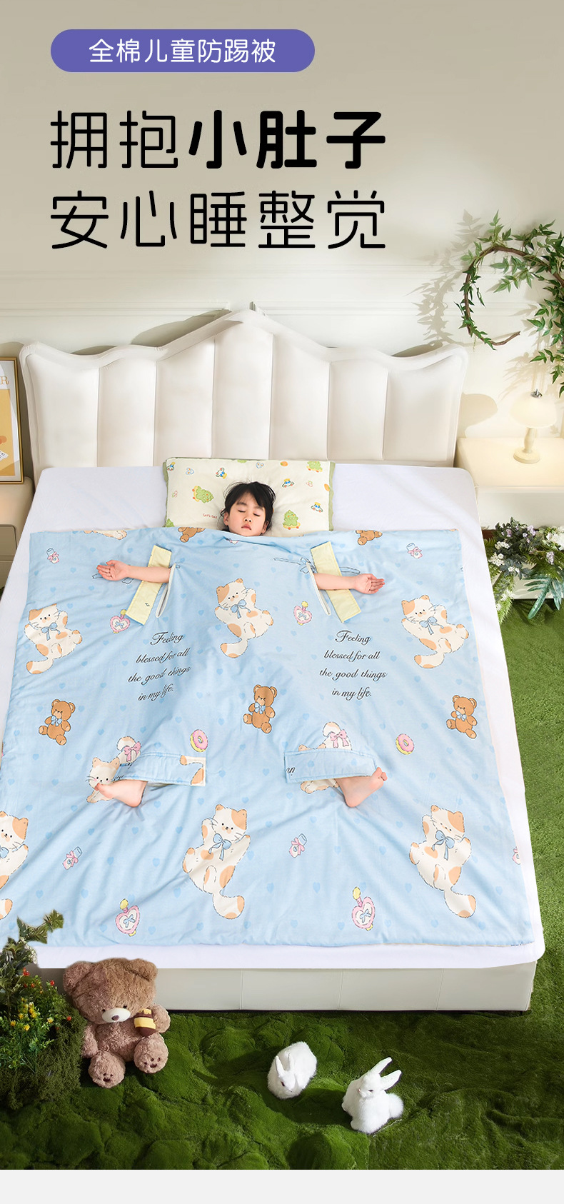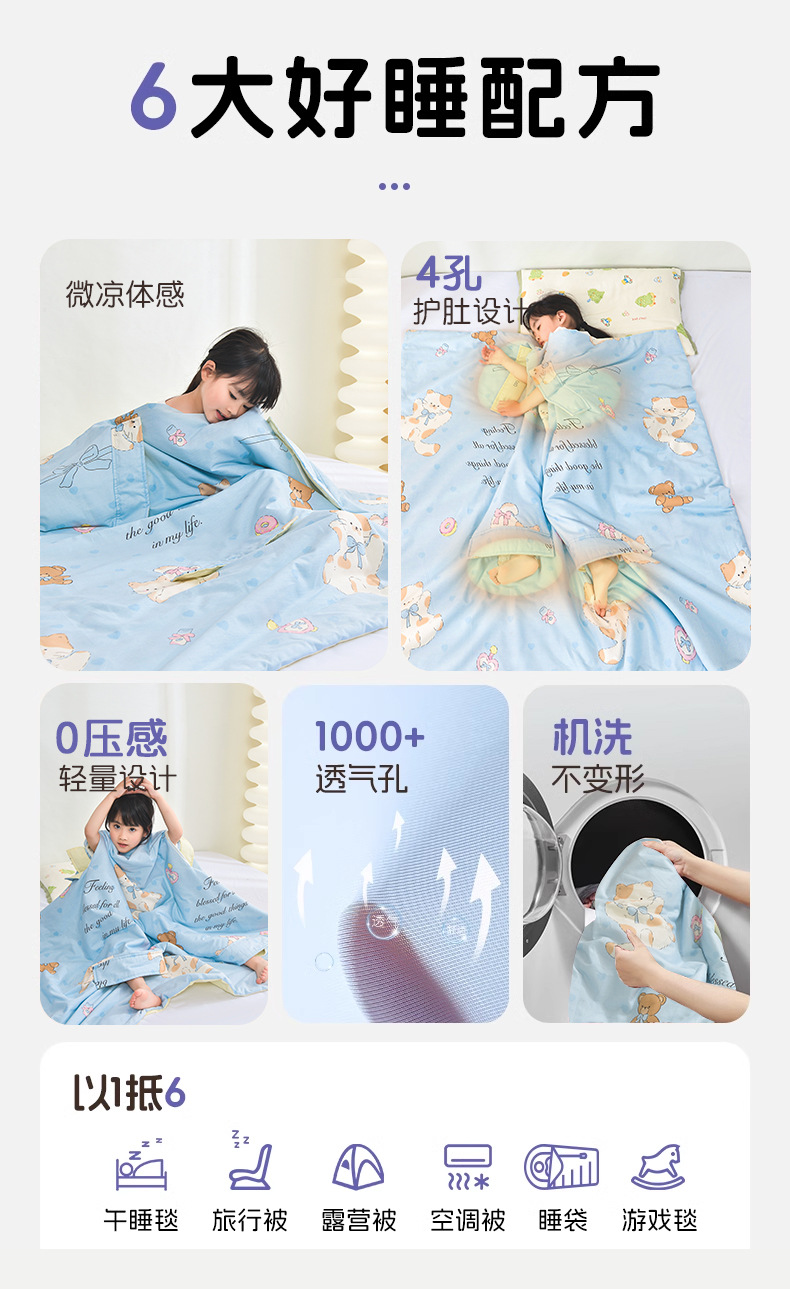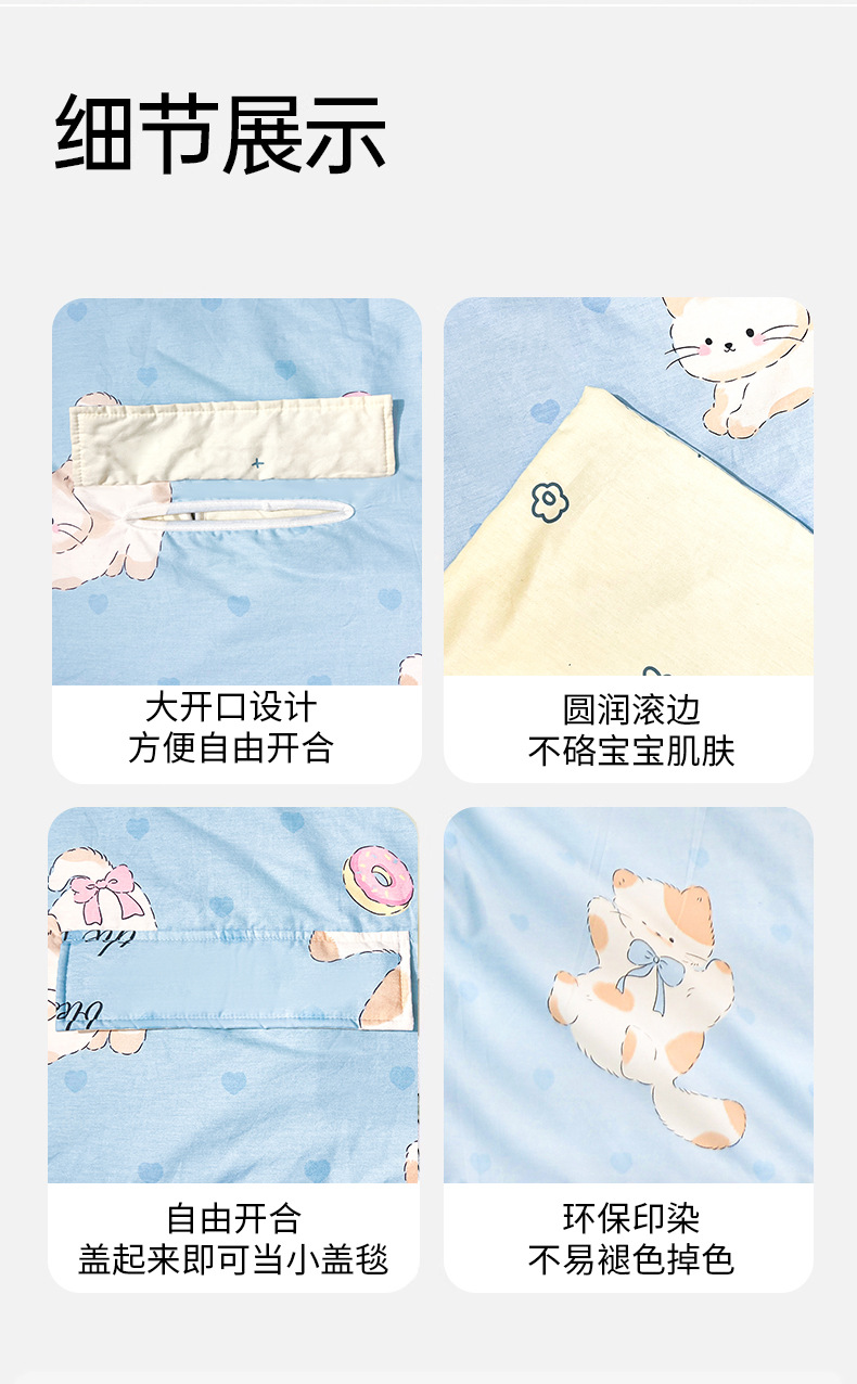 어린이용 대형 어린이용 안티 킥 이불, 면 여름 시원한 이불, 침낭, 세탁기로 세탁 가능한 순면 에어컨 얇은 이불 2025스토어 가기