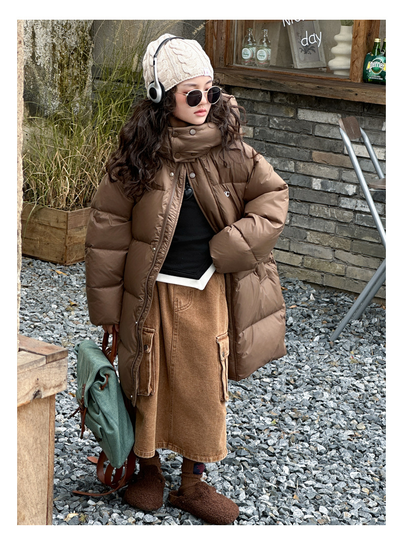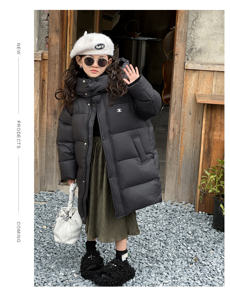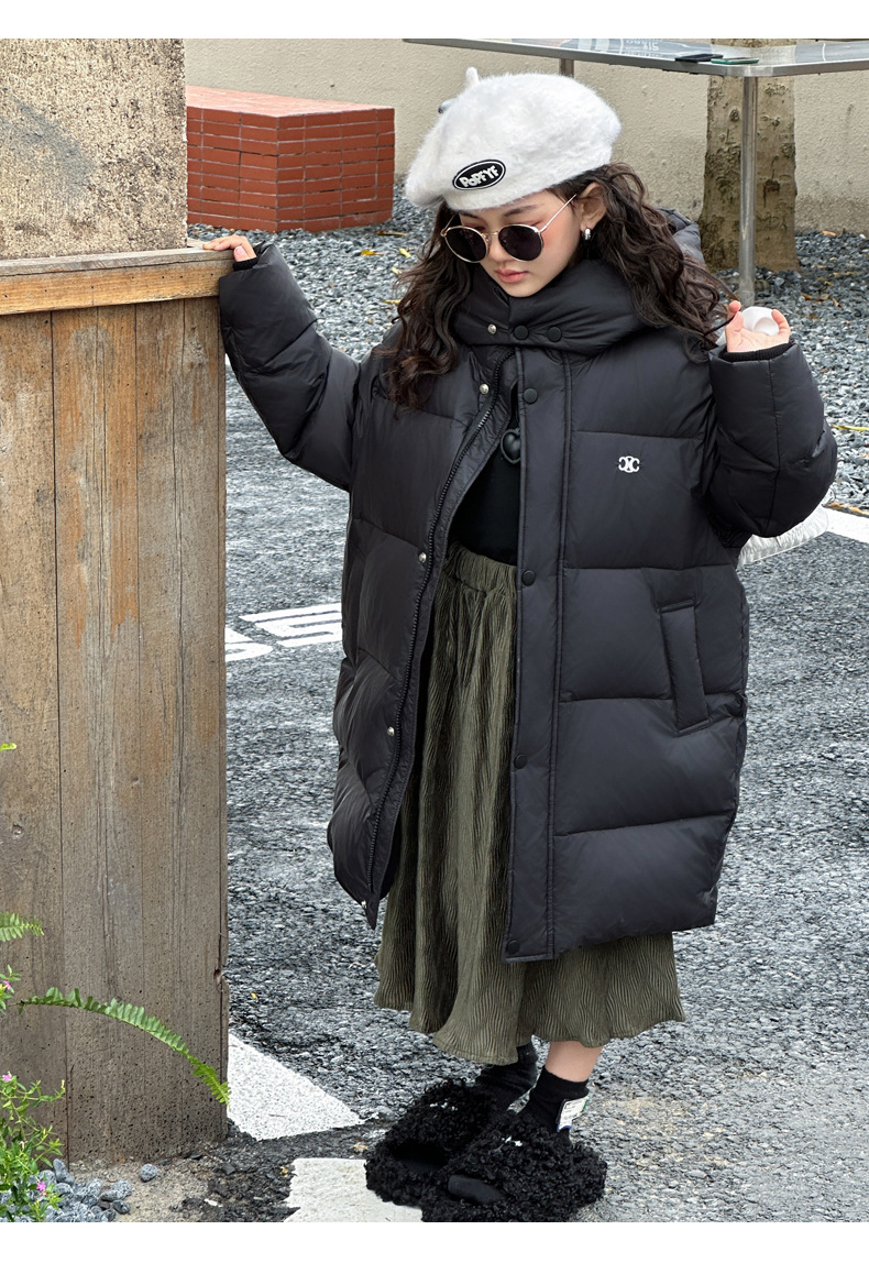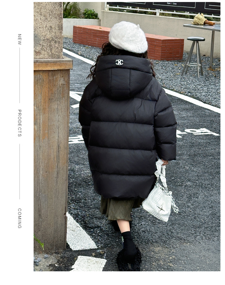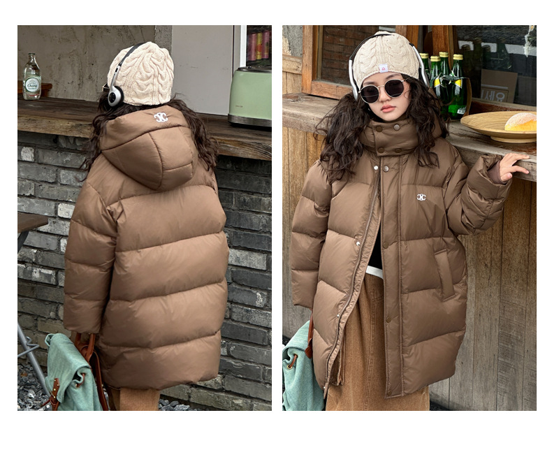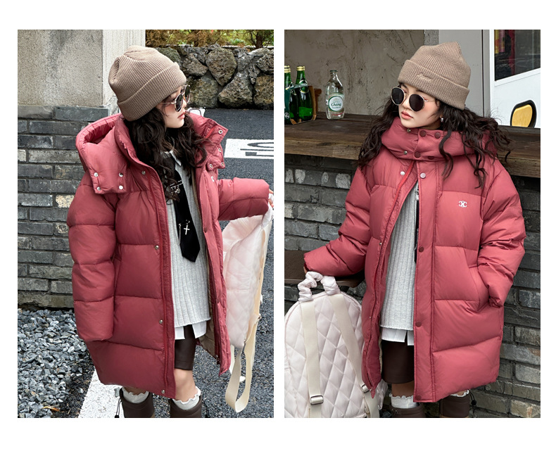 여아 다운 재킷 중간 길이 2025 새로운 스타일 여아 겨울 중대형 아동용 두꺼운 따뜻한 후드 재킷 유행스토어 가기