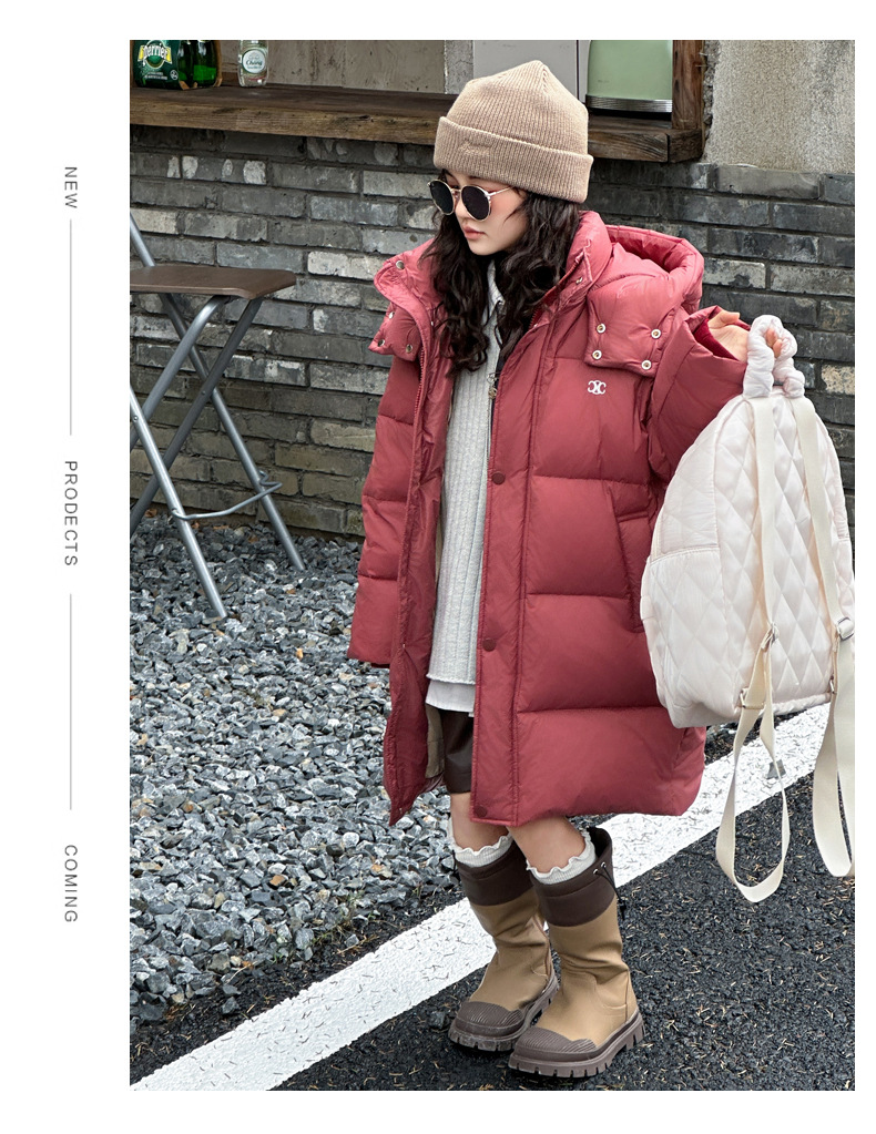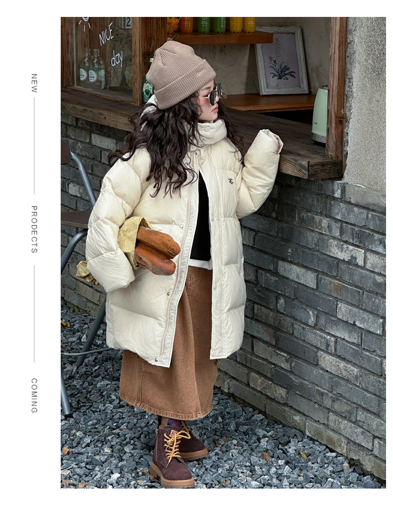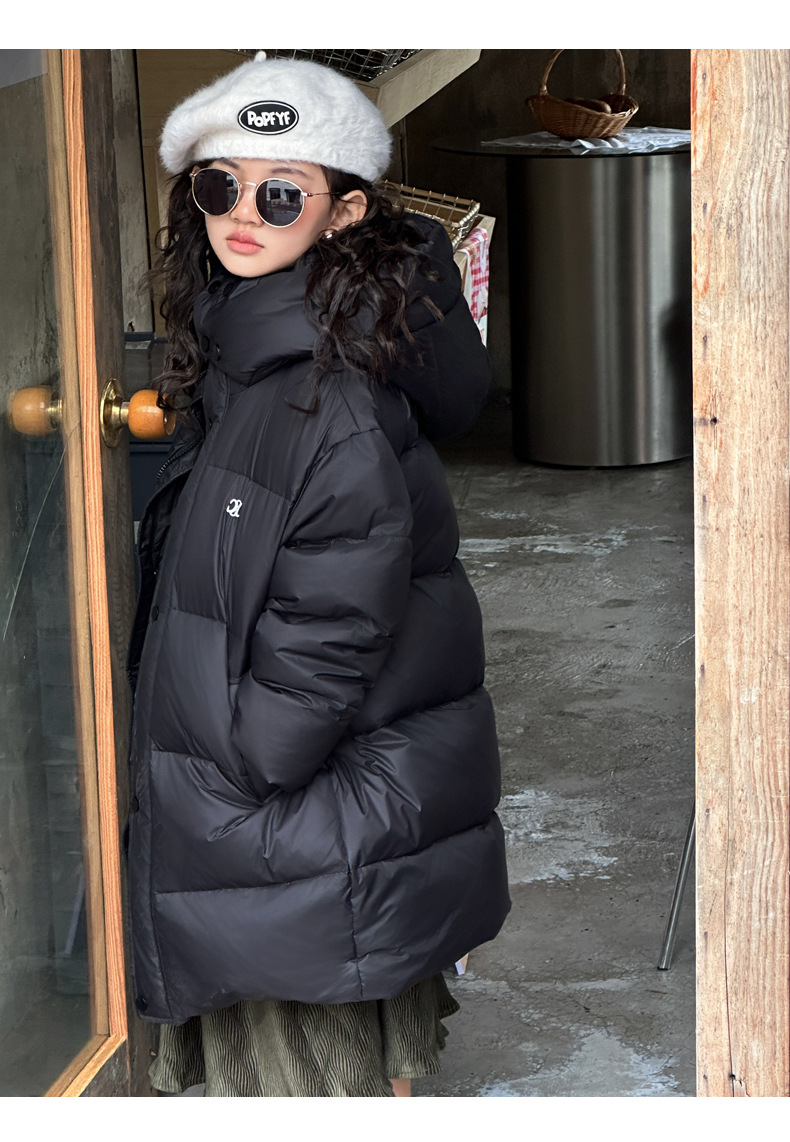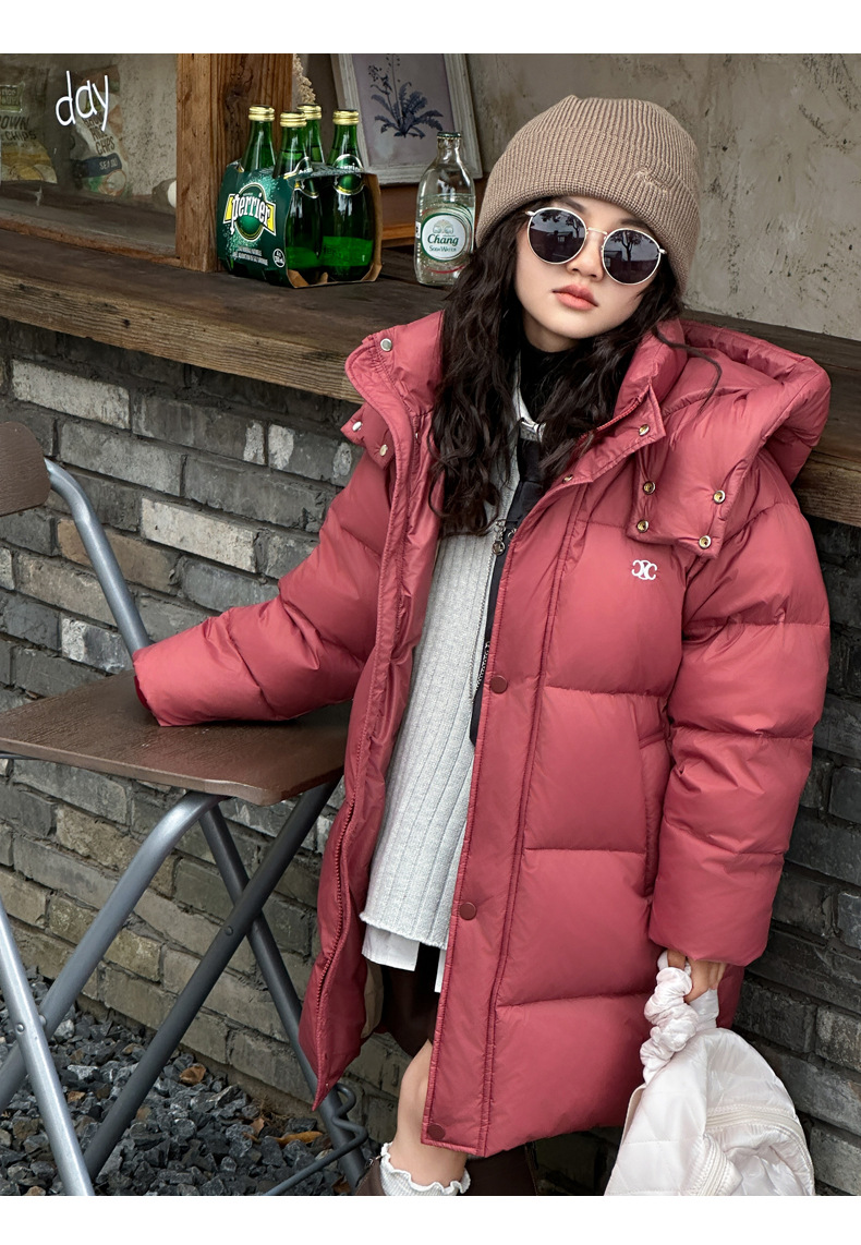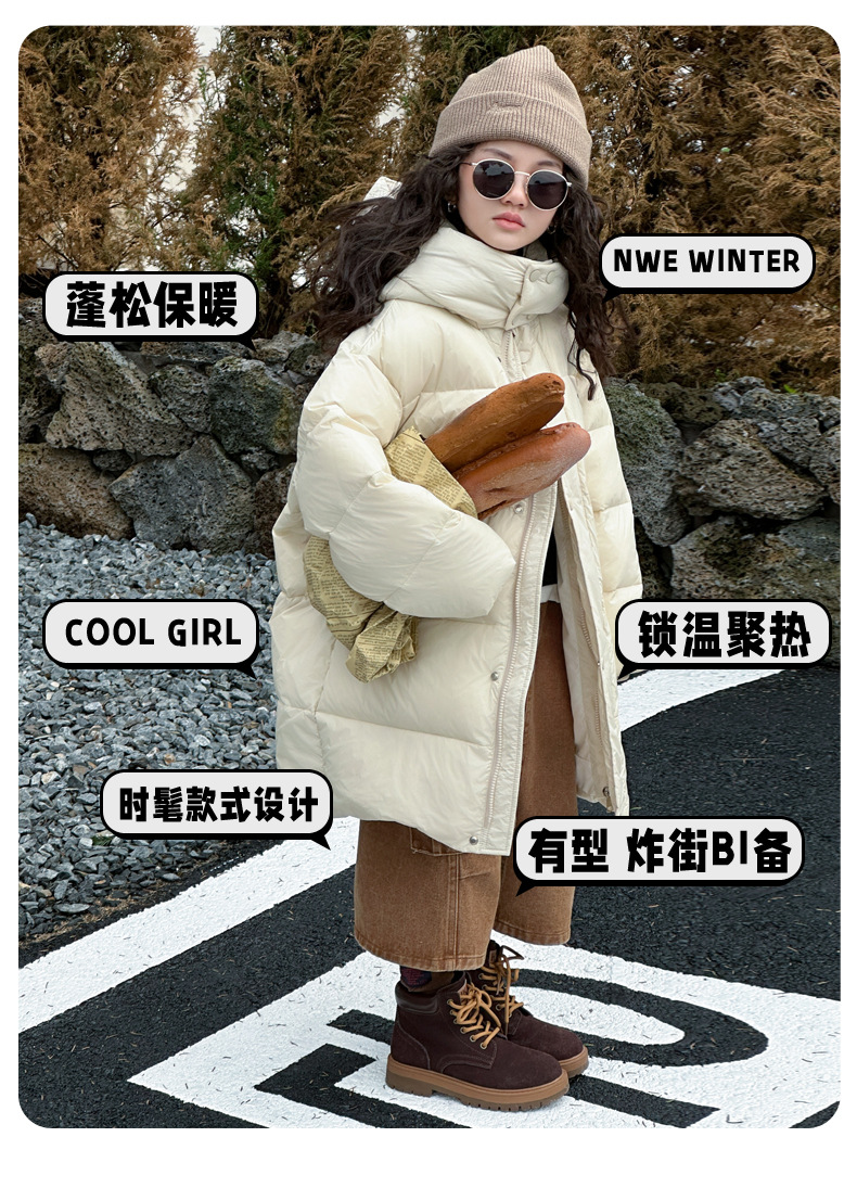 여아 다운 재킷 중간 길이 2025 새로운 스타일 여아 겨울 중대형 아동용 두꺼운 따뜻한 후드 재킷 유행스토어 가기