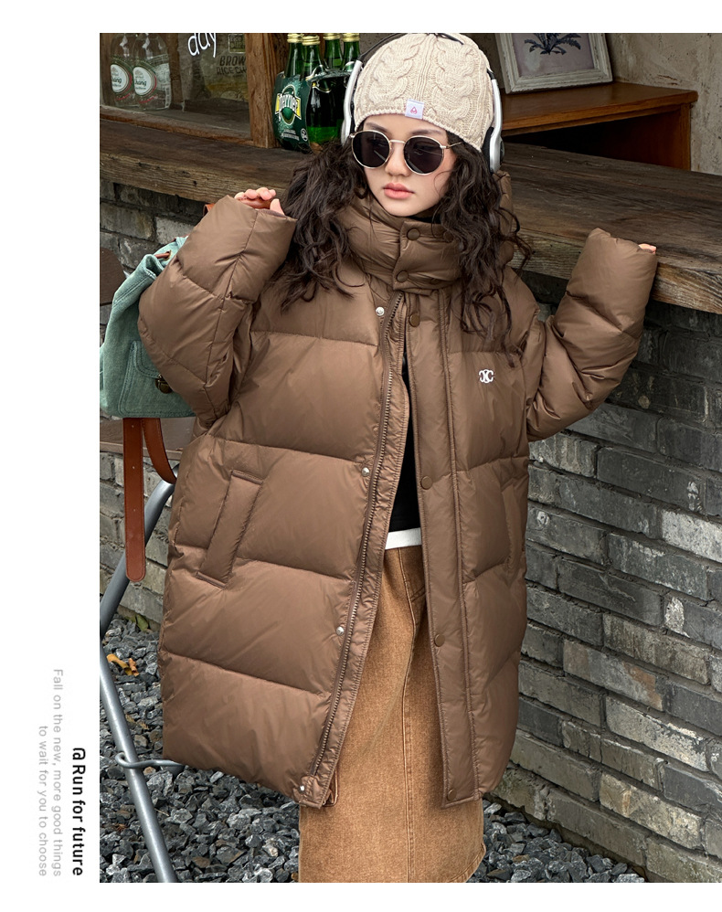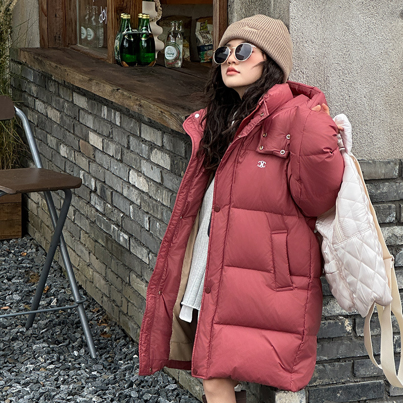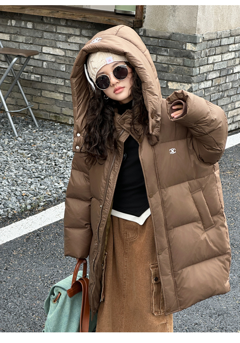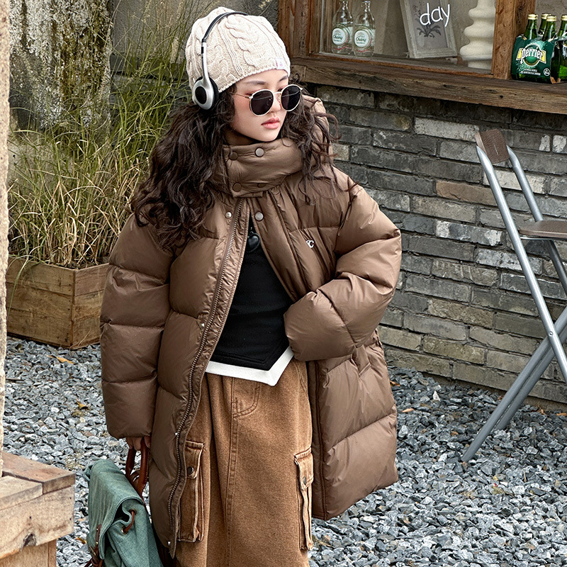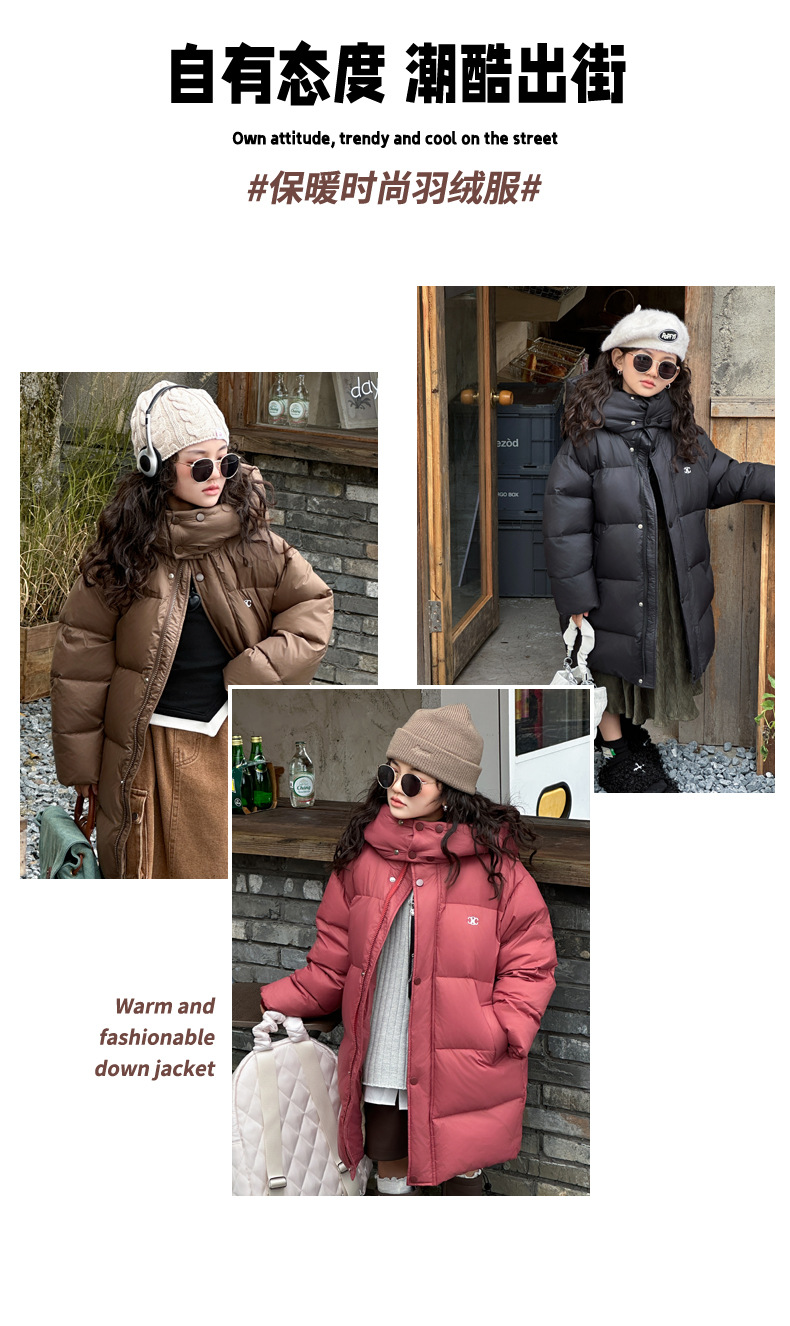 여아 다운 재킷 중간 길이 2025 새로운 스타일 여아 겨울 중대형 아동용 두꺼운 따뜻한 후드 재킷 유행스토어 가기