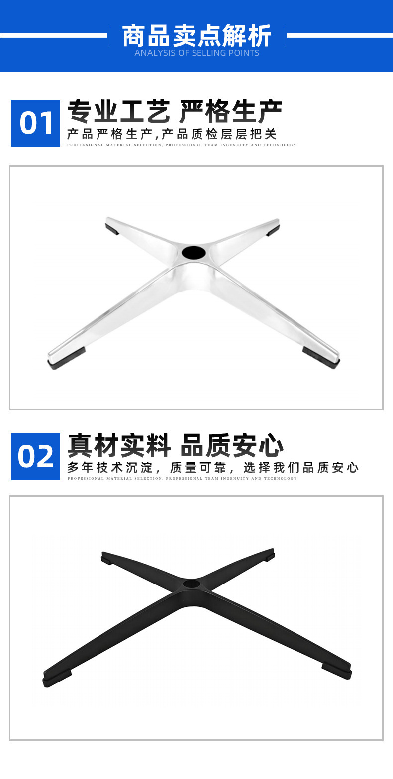 제조 업체 도매 4 별 발 베이스 알루미늄 합금 광택 의자 발 받침대 컴퓨터 의자 사무실 의자 베이스 5 별스토어 가기